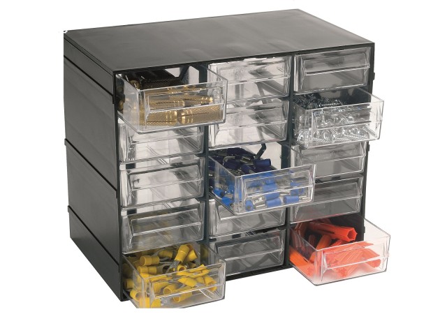 Zásuvkový organizér značky ArtPlast o rozměrech 22,8 x 19 x 14 centimetrů je vybavený 15 zásuvkami z vysoce houževnatého polystyrenu. Tyto zásuvky mají velikost 7,2 x 3,4 x 13,7 centimetrů. Jeho celková nosnost činí 40 kilogramů. Lze ho přimontovat na stěnu. Ideální na drobný spojovací materiál.
