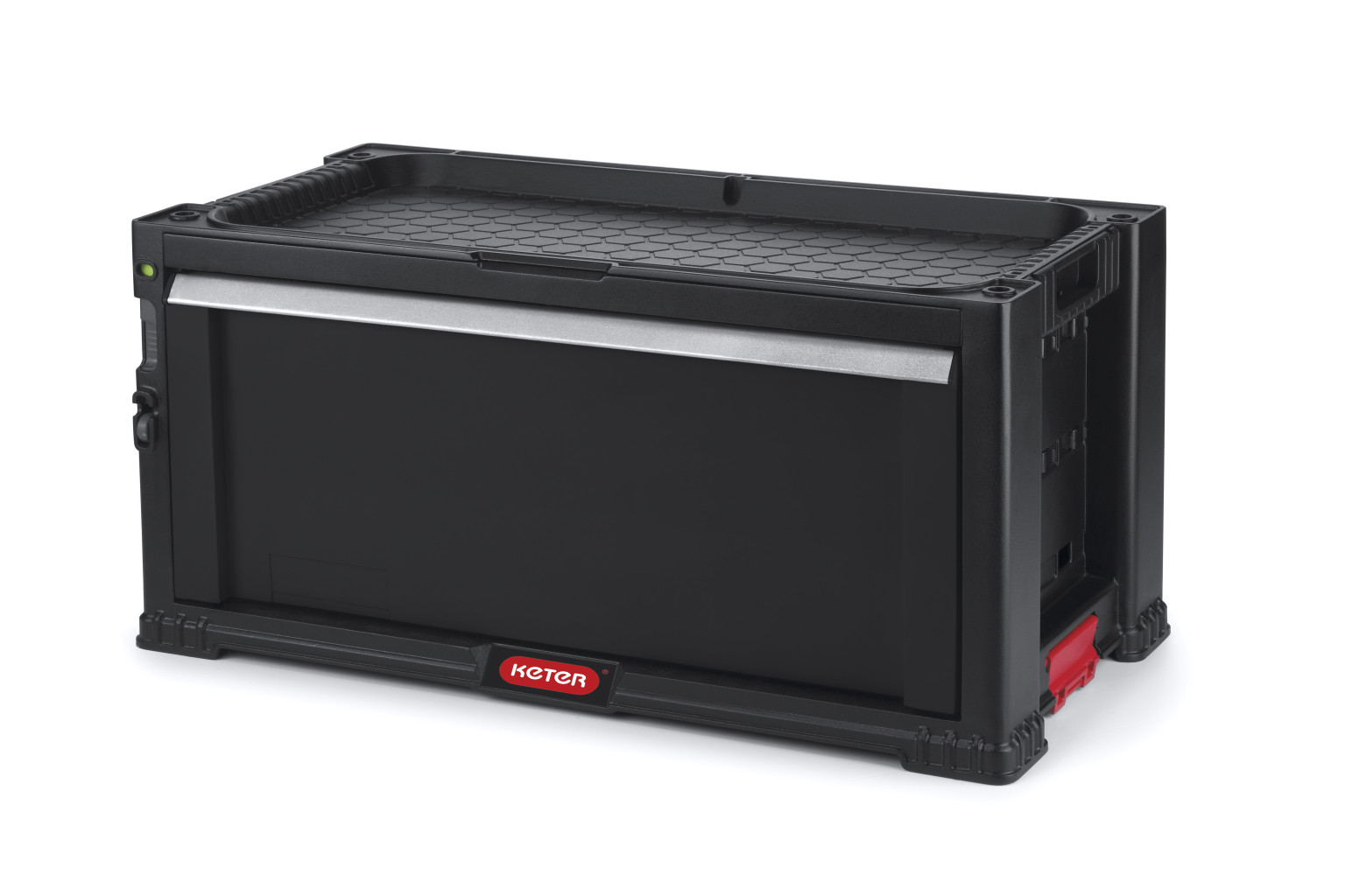 Na stranách boxu najdete rukojeti pro pohodlné přenášení. Ať už si ho chcete naložit do auta, vzít si ho na zahradu nebo uklidit do dílny, manipulace s ním je jednoduchá. Organizér je vybavený jednou prostornou zásuvkou, do které uložíte nářadí či jiné pomůcky. Máte je vždy po ruce a připravené k použití.