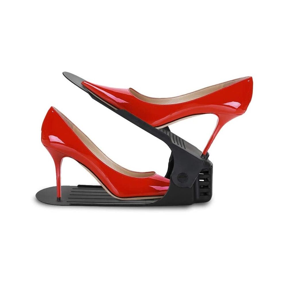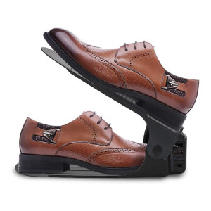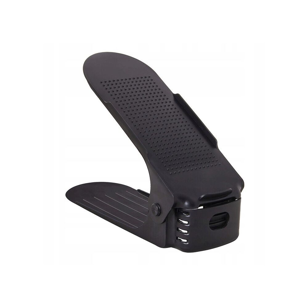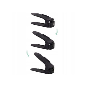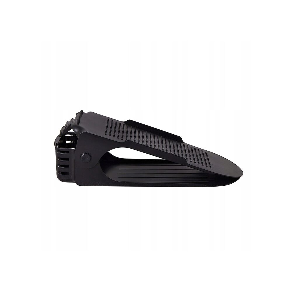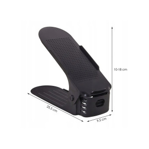 Plastový držák na obuv, se kterým ušetříte polovinu místa a v botníku budete mít opět dokonalý přehled a pořádek. Vhodný pro většinu typů obuvi do velikosti 43. Organizér nejen šetří místo, ale i chrání boty před poškozením a ušpiněním. Protiskluzový povrch, zarážky a nastavitelná výška.