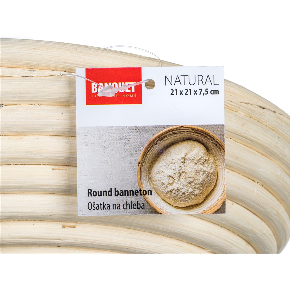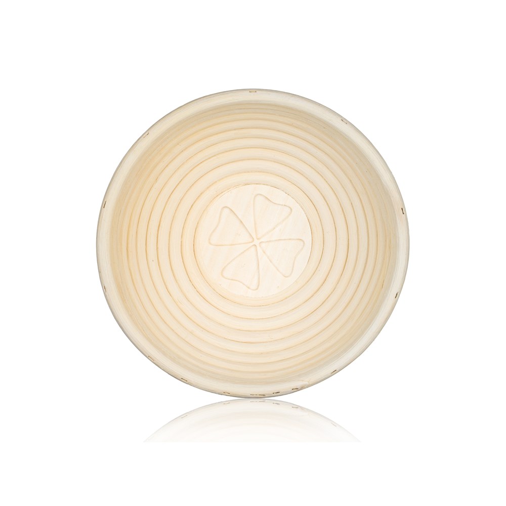 Dotaz na produktKulatá ošatka z přírodního pedigu s dekorem čtyřlístku o rozměru 21 x 7,5 cm je určena na kynutí chleba. Po použití se doporučuje ošetřit pouze vlhkým hadříkem.
