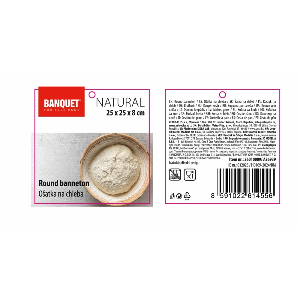 Dotaz na produktKulatá ošatka z přírodního pedigu o rozměru 25 x 8 cm je určena na kynutí chleba. Po použití se doporučuje ošetřit pouze vlhkým hadříkem.