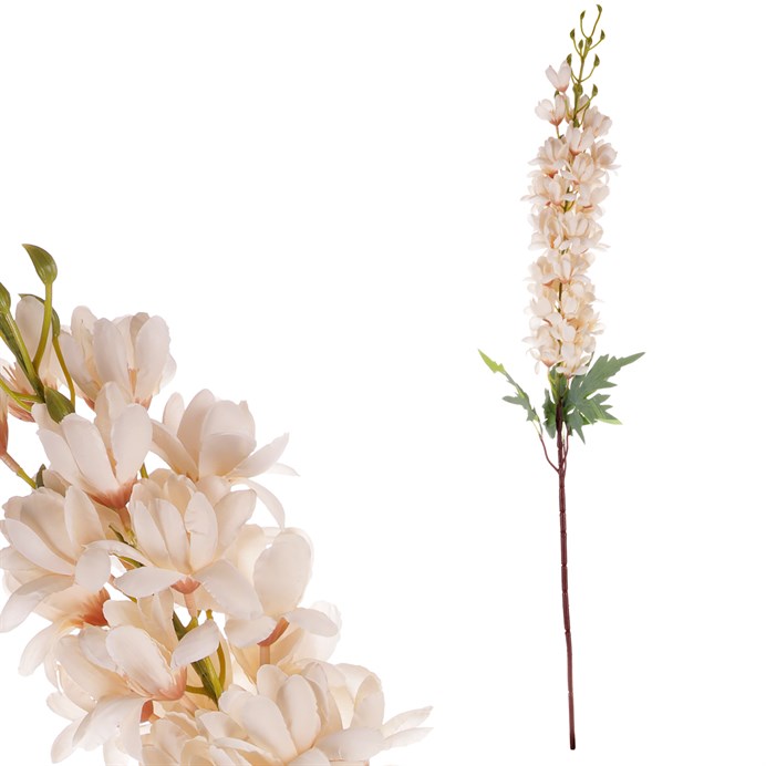 Dotaz na produktVyužijte výhod, které nabízí umělá květina v podobě ostrožky s meruňkovou barvou květů. Bez nutnosti péče a údržby získáte trvalou a nikdy nekončící květinovou dekoraci, kterou můžete používat tak dlouho, jak jen budete chtít. Ostrožka je nádherná květina, která je známá pro svůj elegantní a vznešený vzhled. Tato květina patří do čeledi hvězdnicovitých a je považována za trvalku. Ostrožky mají většinou stonky porostlé listy, které mohou být chlupaté a mají hluboké zelené odstíny. Květy jsou velké a mají charakteristický tvar hlavice, která se skládá z mnoha malých kvítků uspořádaných do kruhu.