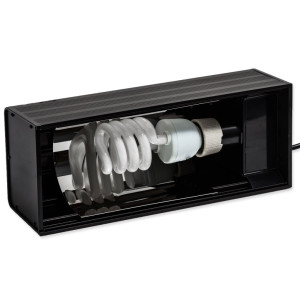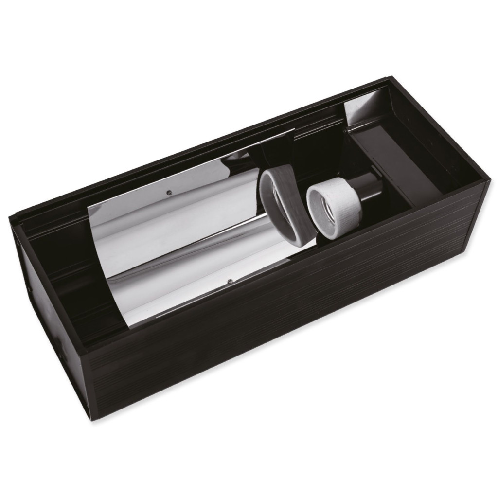 Kvalitně zpracované osvětlení pro terarijní žárovky. Konstrukce umožňuje horizontální použití žárovek, což je ideální varianta pro UVB žárovky, které touto instalací nabízejí vyšší výkon UVB záření. Pro výhřevné žárovky je tento systém nevhodný, neboť se v drtivé většině jedná o žárovky s reflektorovým systémem a žárovka by tedy ohřívala pouze vnitřní část světla a směrem dolů by neměla téměř žádnou účinnost.