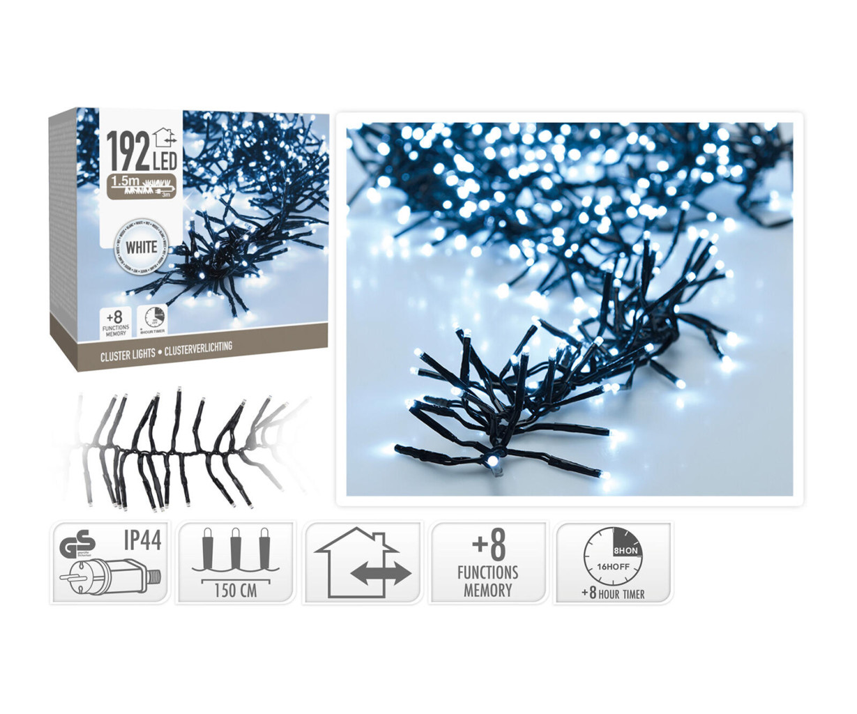 Dotaz na produktOsvětlení vánoční 1,5 m, 192LED, studená BÍ, 8 funkcí, s časovačem.