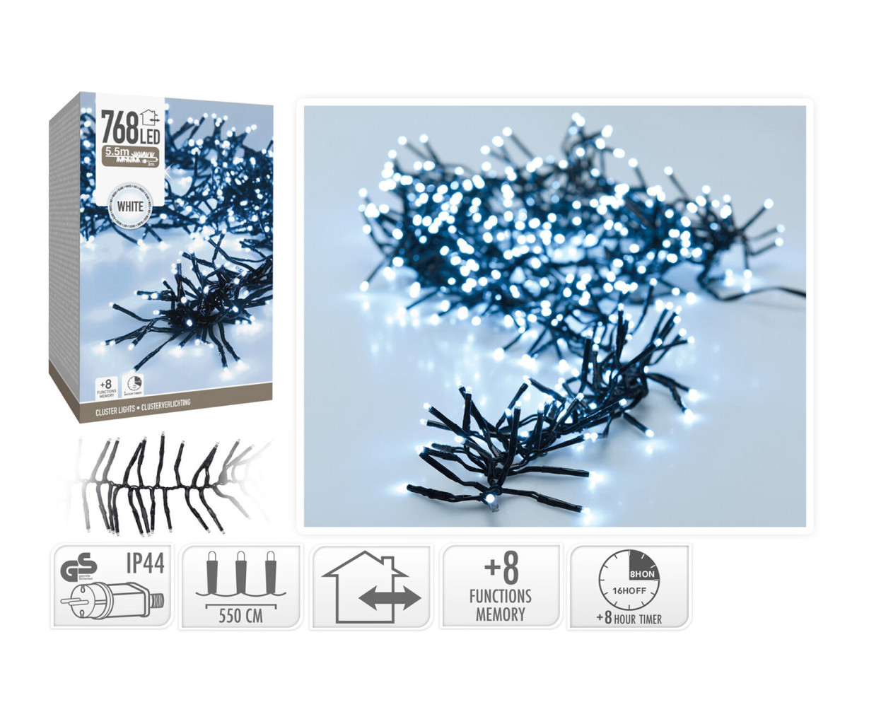 Dotaz na produktOsvětlení vánoční 5,5 m, 768LED, studená BÍ, 8 funkcí, s časovačem.