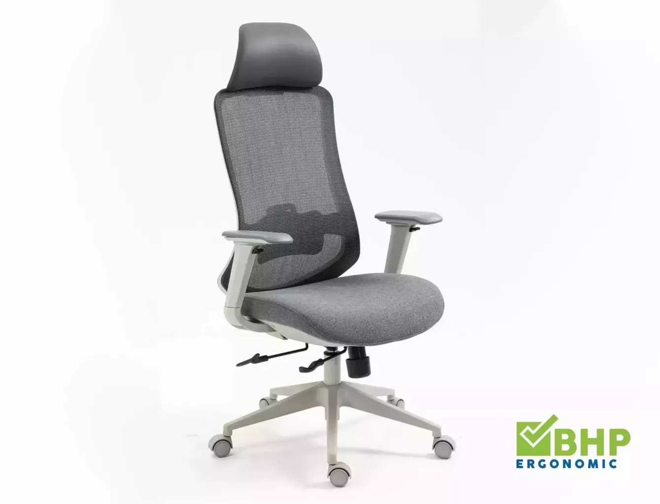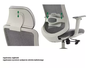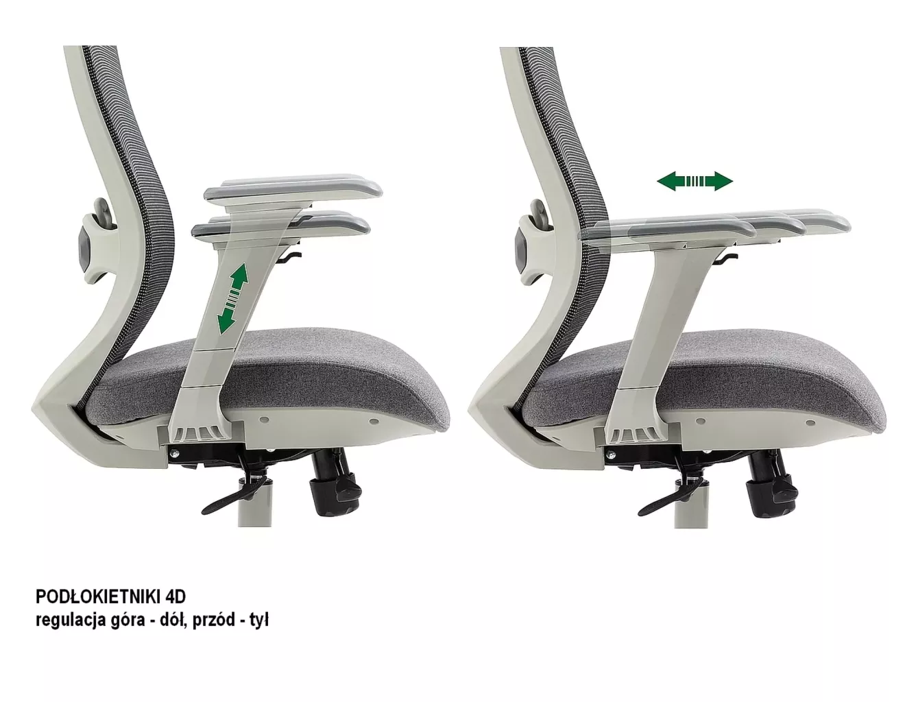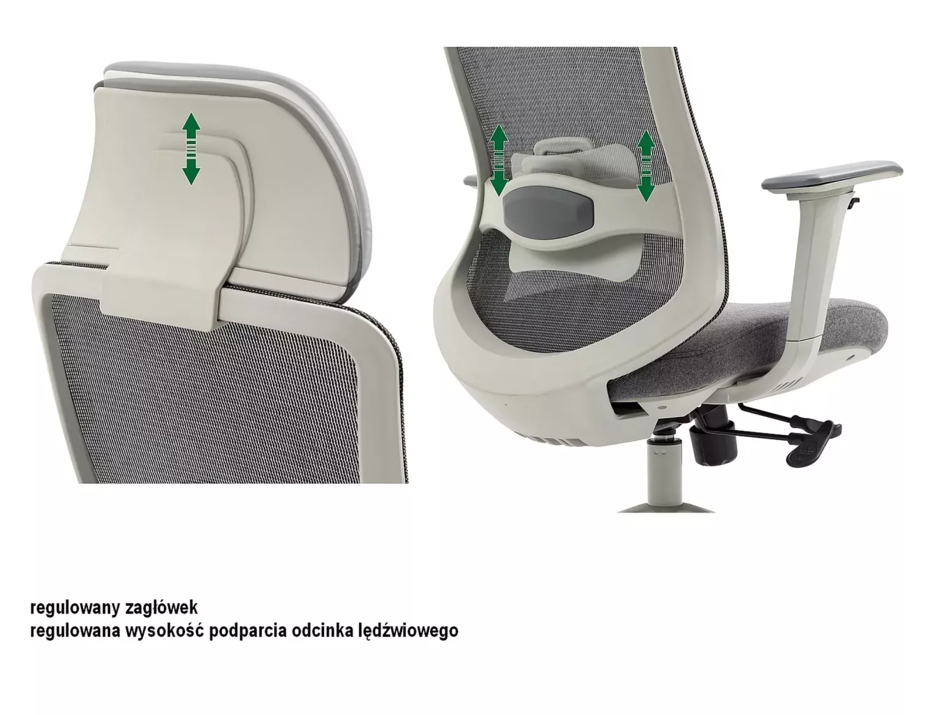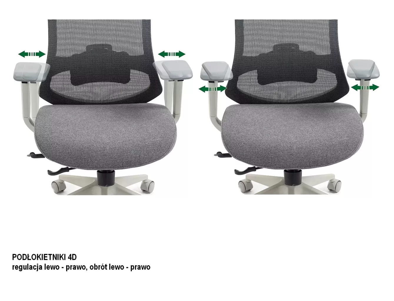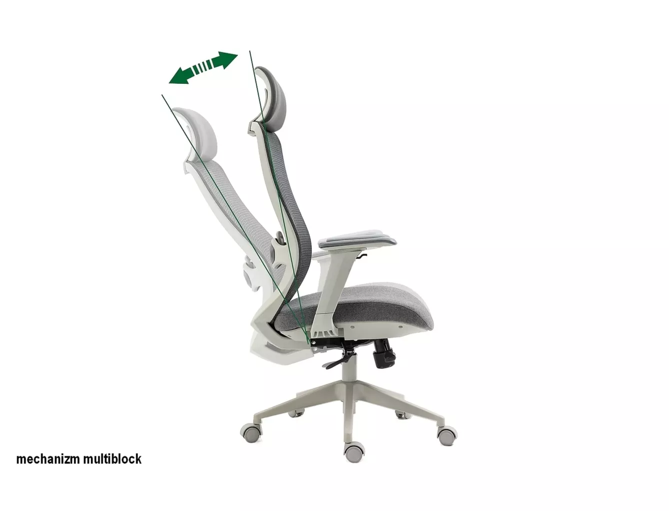 Dotaz na produkt Na splátky ještě dnesErgonomická otočná židle, splňuje požadavky bezpečnosti a ochrany zdraví při práci pro kancelářské židle v souladu s vyhláškou Sbírky zákonů, položka 2367. Tento model získal pozitivní fyziologické a ergonomické hodnocení od Ústavu pracovního lékařství (podrobnosti v záložce „KE STAŽENÍ“). Látka / syntetická kůže / síťovina, barva: šedá, plastový rám, barva: šedá, multiblok, nylonová kolečka, pohyblivé 4D područky, nastavitelná opěrka hlavy a bederní opěrka, nastavitelná hloubka sedáku, maximální nosnost 136 kg.