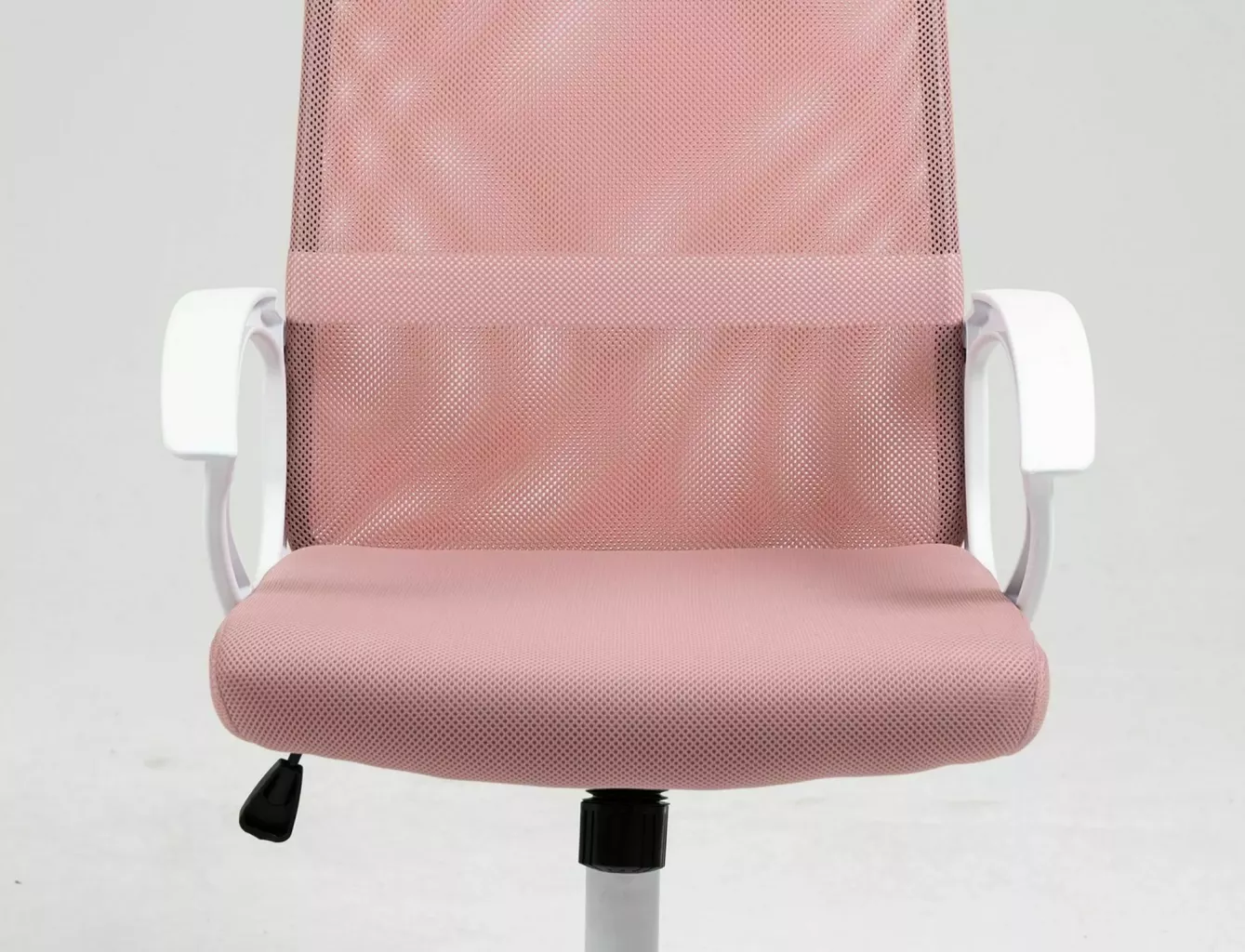 Dotaz na produkt Na splátky ještě dnesOtočné křeslo, membránová látka / síťovina / syntetická kůže, barva: růžová, plastová kostra, barva: bílá, mechanismus TILT, pevné područky.
