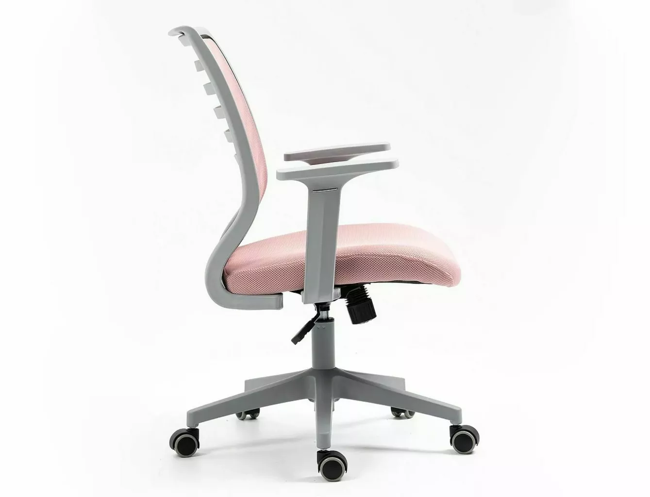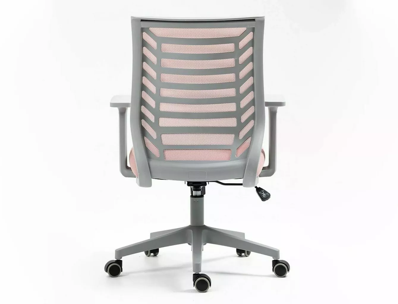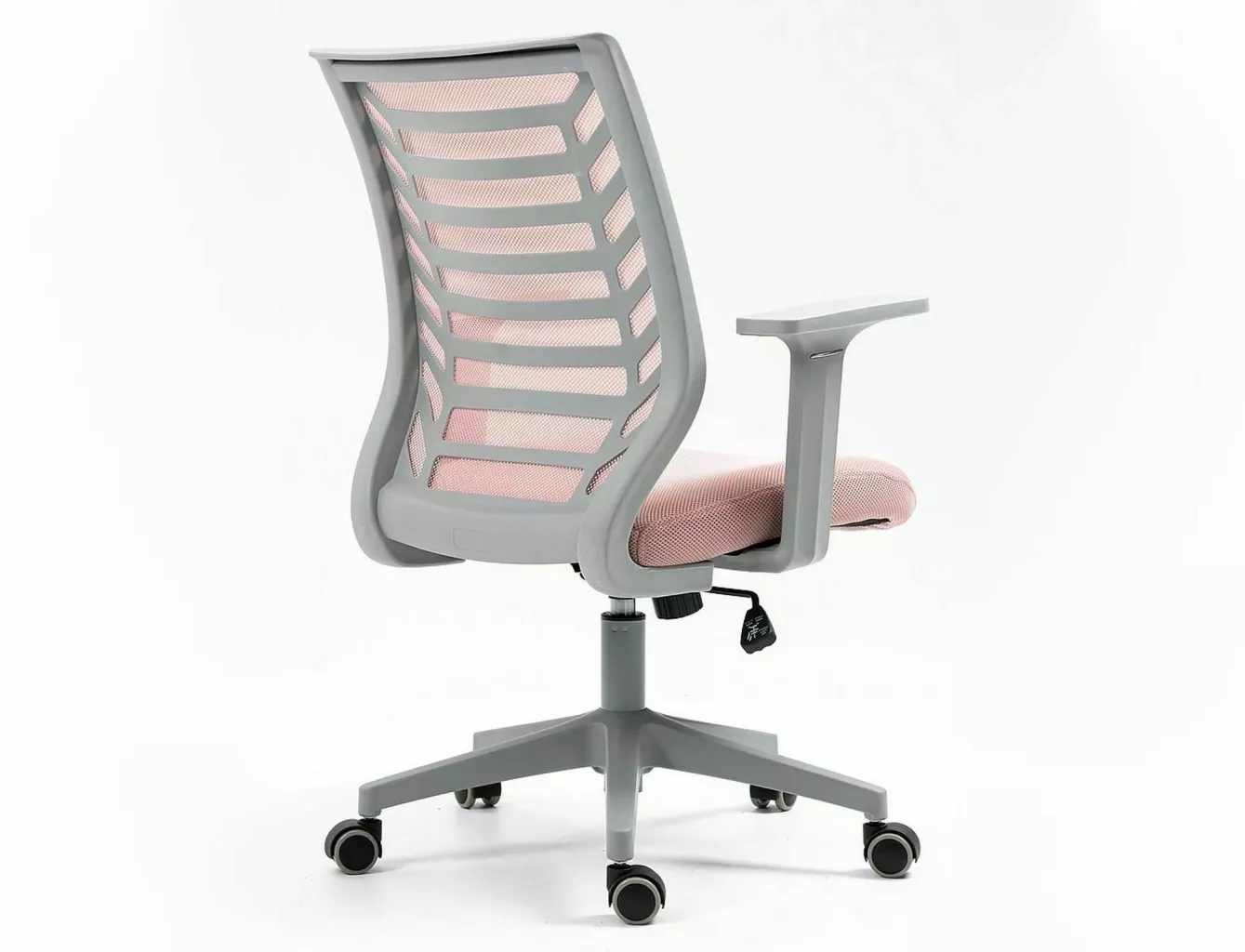 Dotaz na produkt Na splátky ještě dnesOtočné křeslo, membránová látka, barva: růžová, plastová kostra, barva: šedá, mechanismus TILT, pevné područky.