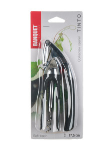 Dotaz na produktOtvírák na láhve TINTO 17,5 cm má pákový systém, který umožní otevření lahve rychle a bez námahy. Otvírák je vyrobený ze slitinu zinku s pochromovaným povrchem. Rukojeti jsou ze speciálního plastu, který má protiskluzovou úpravu. Výrobek není vhodný do myčky nádobí.