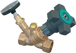 Provedení se šikmým sedlem se zajištěným a kdykoliv kontrolovatelným jemným přednastavením; teploměr pro kontrolu teploty, hadicové vypouštění pro vypuštění smyčky, hodnota, přednastavení čitelná podle polohy otočné