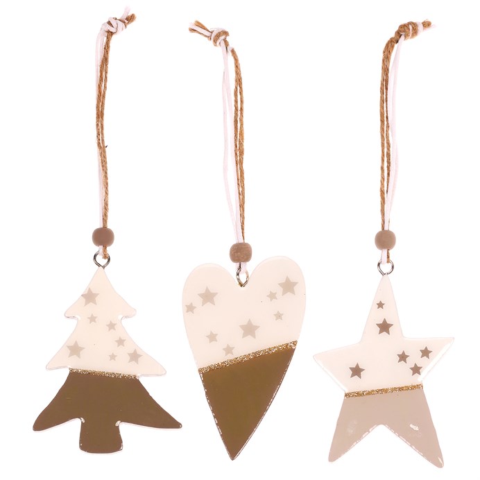 Dotaz na produktTyto kouzelné dřevěné ověsky jsou tou správnou volbou pro vaši vánoční výzdobu. V balení najdete mix tří různých tvarů a barevných kombinací, které přinášejí do vašeho domova příjemnou, útulnou atmosféru. Ověsky jsou navlečeny na provázek a každá ze zavěšených ozdob má svůj unikátní vzhled, přičemž horní polovina je v bílém dekoru a spodní je hnědá až béžová. Bílá horní část je krásně doplněna hnědými až béžovými hvězdičkami, které dodávají ověskům jedinečný vzhled. Můžete je pověsit na vánoční stromek, na stěnu, dveře, závěs, okno a další místa, která si přejete ozdobit.