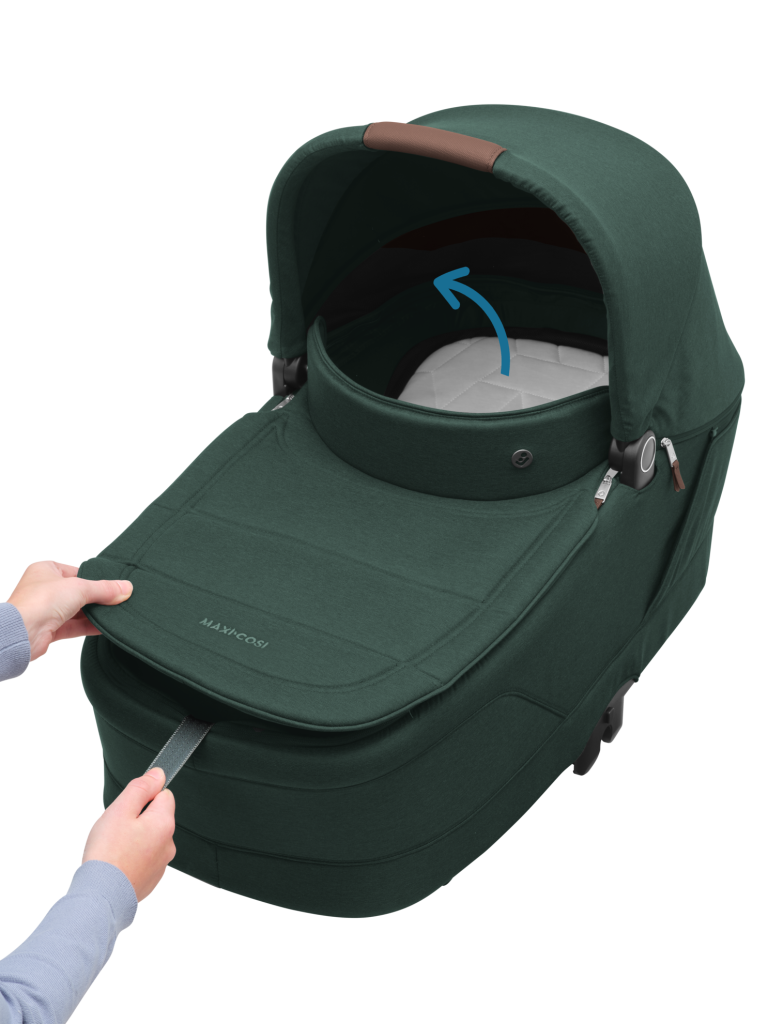Prostorná korbička Maxi-Cosi Sense s oboustrannou prodyšnou ClimaFlow matrací z paměťové pěny a ventilačním okénkem poskytne vašemu miminku pohodlí při spánku a optimální větrání i během teplých letních dní. Integrovaný systém SoothingSlope umožňuje jednoduchým způsobem vytvořit lehce nakloněnou polohu pro spaní, která pomáhá minimalizovat riziko refluxu. Velká sklápěcí stříška ochrání dítě před sluncem a nepříznivým počasím. Připevnění na podvozek kočárku je velmi jednoduché s pomocí přiložených adaptérů. Korbičku lze složit do kompaktního plochého tvaru a díky tomu snadno skladovat či přepravovat.