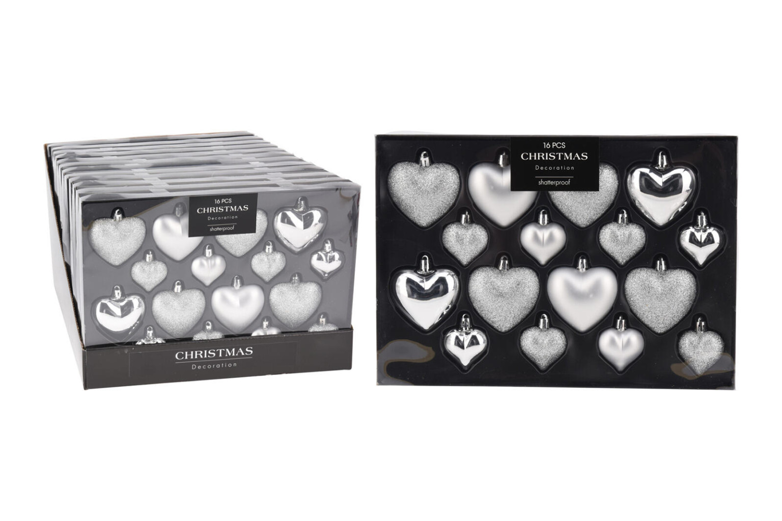 Dotaz na produktOzdoba vánoční SRDCE 4,5 cm / 6,5 cm, STŘ mix (8 + 8 ks).
