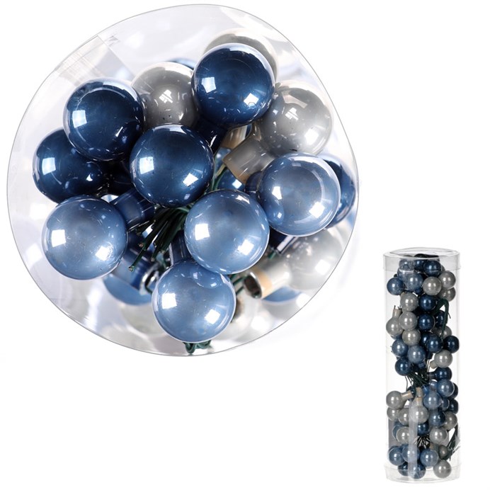 Ozdoby skleněné - pr. 1,5 cm, modré a šedé, cena za balení (72 ks)