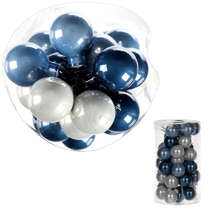 Ozdoby skleněné - pr. 2,5 cm, modré a šedé, cena za balení (36 ks)