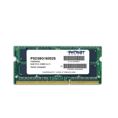 Patriot je značková a velmi výkonná operační paměť typu DDR3 SO-DIMM. Poskytuje kapacitu 8 GB, běžící na frekvenci 1 600 MHz s latencí CL9.