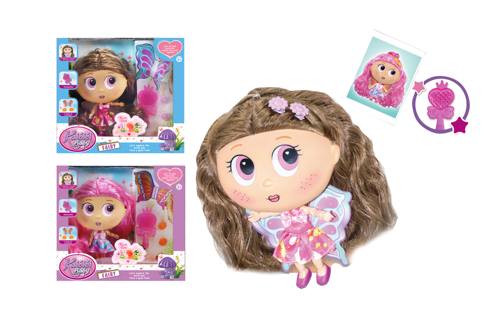 Dotaz na produktPanenka s doplňky. Velikost 18 cm. Součástí hřeben, 2 sponky, motýlek do vlasů. 2 varianty - hnědé, růžové vlasy.