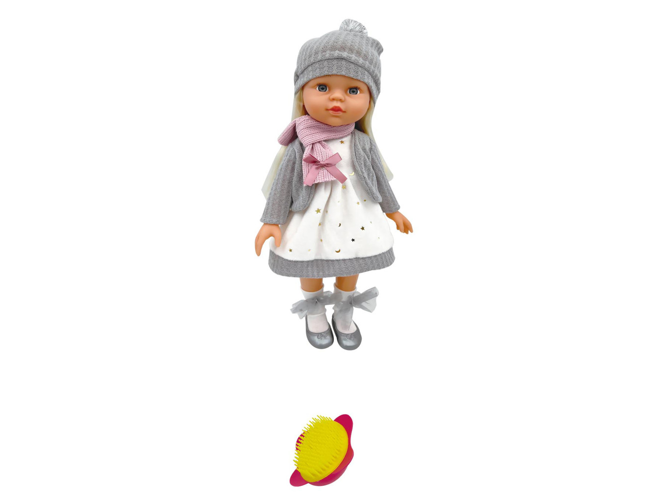 Dotaz na produktPanenka s hřebenem. Velikost 43cm. Obsahuje panenku a hřeben na vlasy.