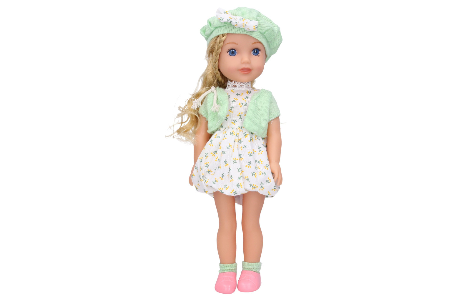 Dotaz na produktPanenka s kabelkou, čepicí a zvukovými efekty. Velikost 36 cm. Zvukové efekty stiskem bříška. 3xAG13 baterie součástí. Součástí hřeben a kabelka.
