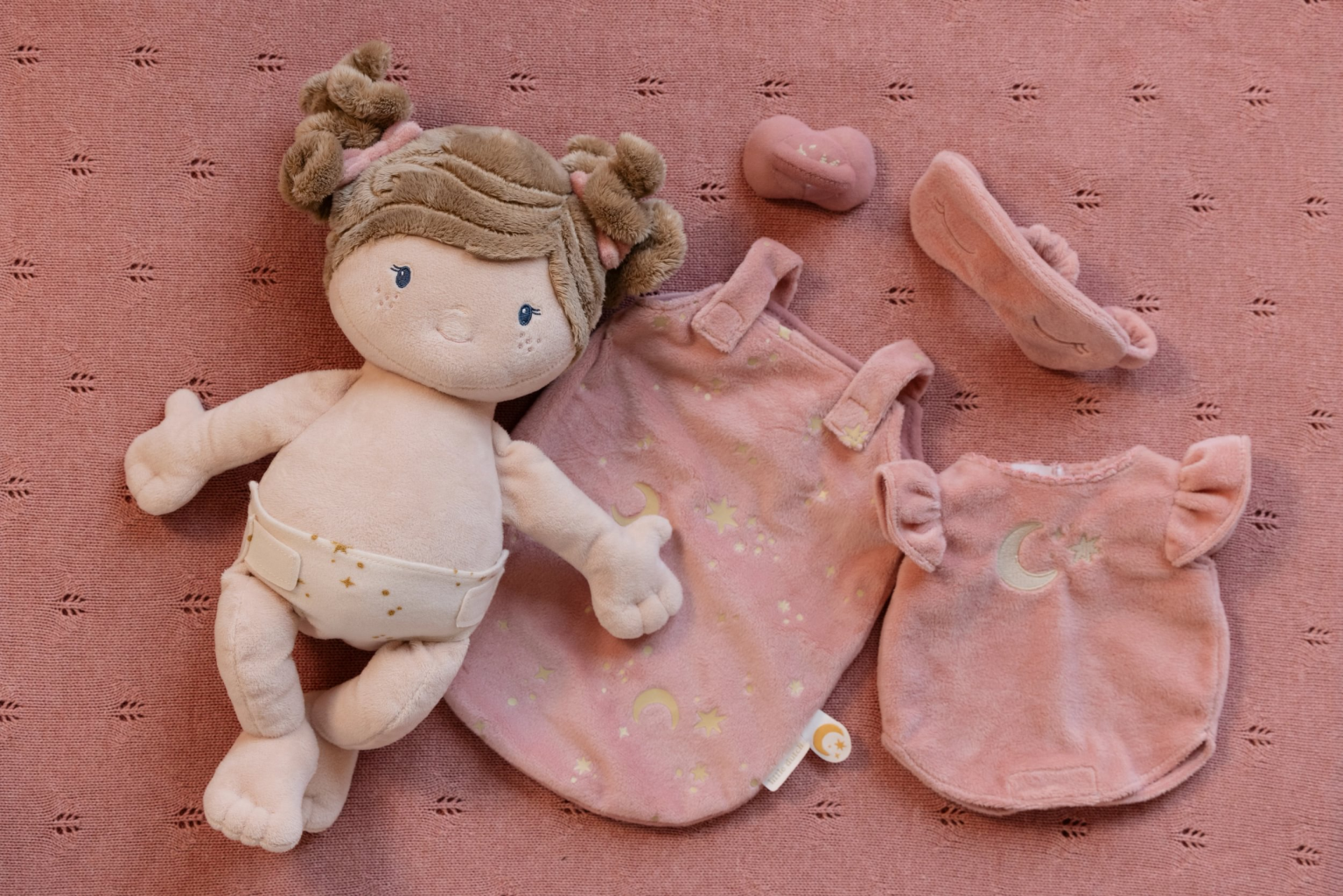 Dotaz na produktNěžná plyšová panenka Rosa z měkkého jemného materiálu je připravena na spaní, oblečena do pyžámka, vybavená plínkou, spacím pytlem, šidítkem i clonou na oči. Je vhodná na hraní i mazlení a bude se s ní i krásně usínat! Hvězdičky na spacím pytli v noci jemně světélkují, takže panenku v postýlce snadno najdete i v noci!