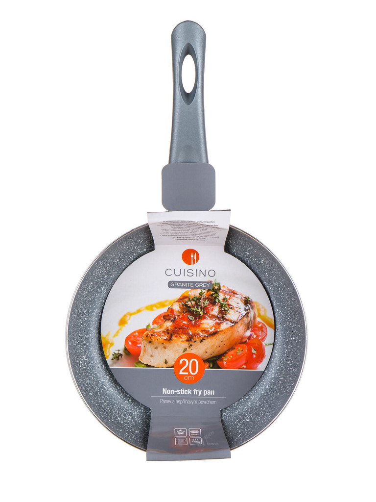 Dotaz na produktPánev 20 x 4,5 cm, nepřilnavý povrch, CUISINO GRANITE GREY.