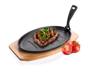 Dotaz na produktPánev 27 x 17,5 cm GRADA, litina + dřevěné prkénko.