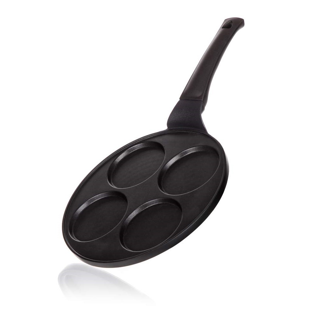 Pánev s praktickými formami vám umožní přípravu až 4 lívanců o průměru 10 cm najednou. Nikdo z vaší rodiny tedy na domácí pochoutku nečeká příliš dlouho.