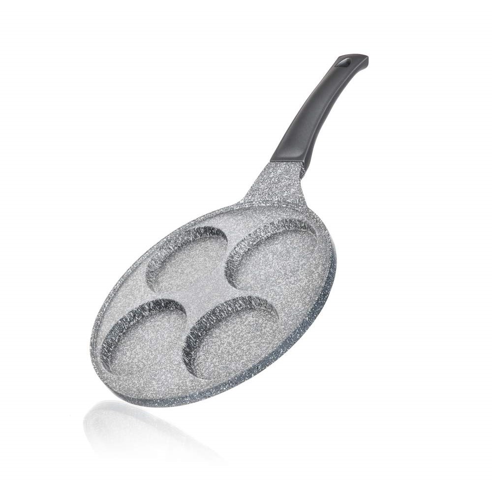Pánev s praktickými formami vám umožní přípravu až 4 volských ok, lívanců či jiných placek najednou. Nikdo z vaší rodiny tedy na domácí pochoutku nečeká příliš dlouho.