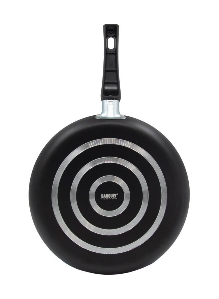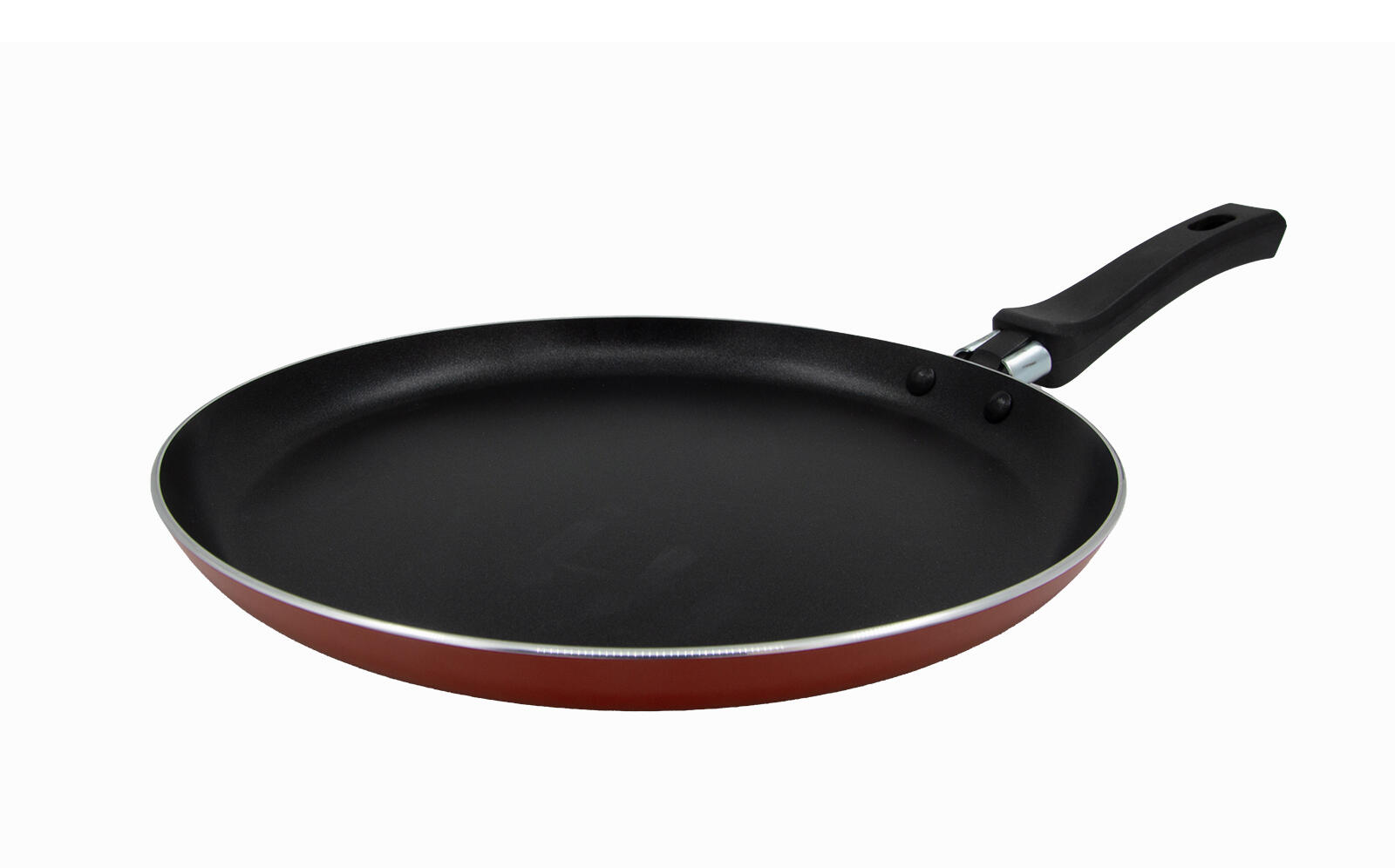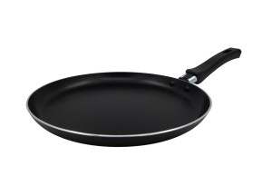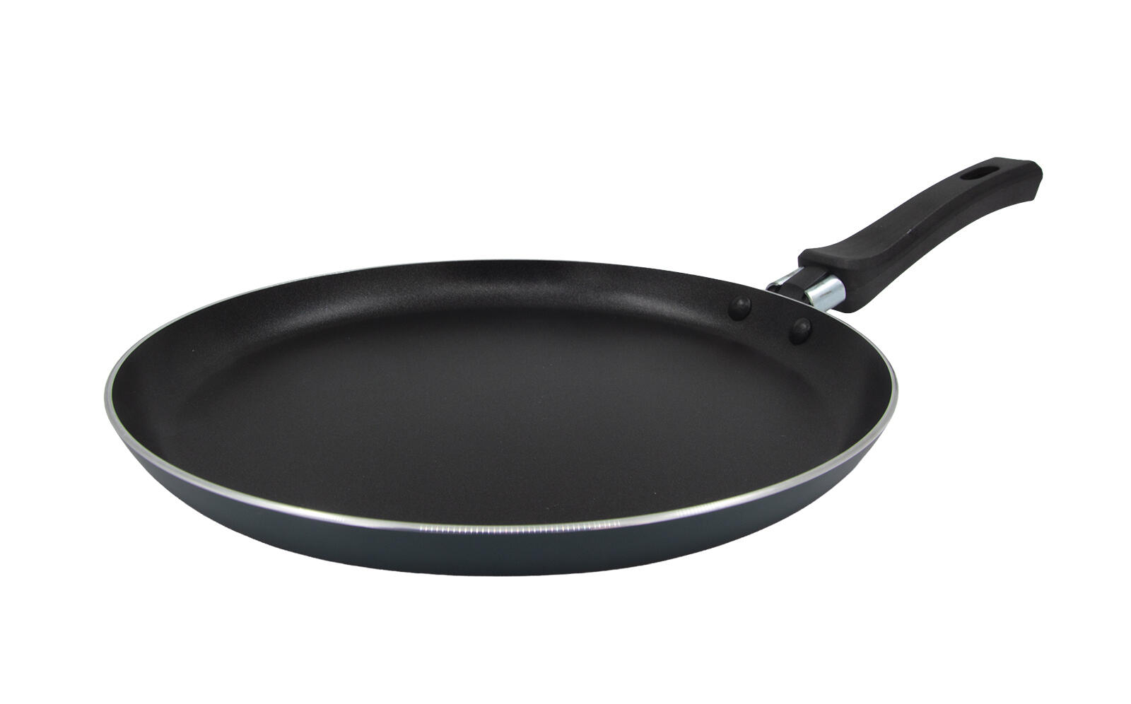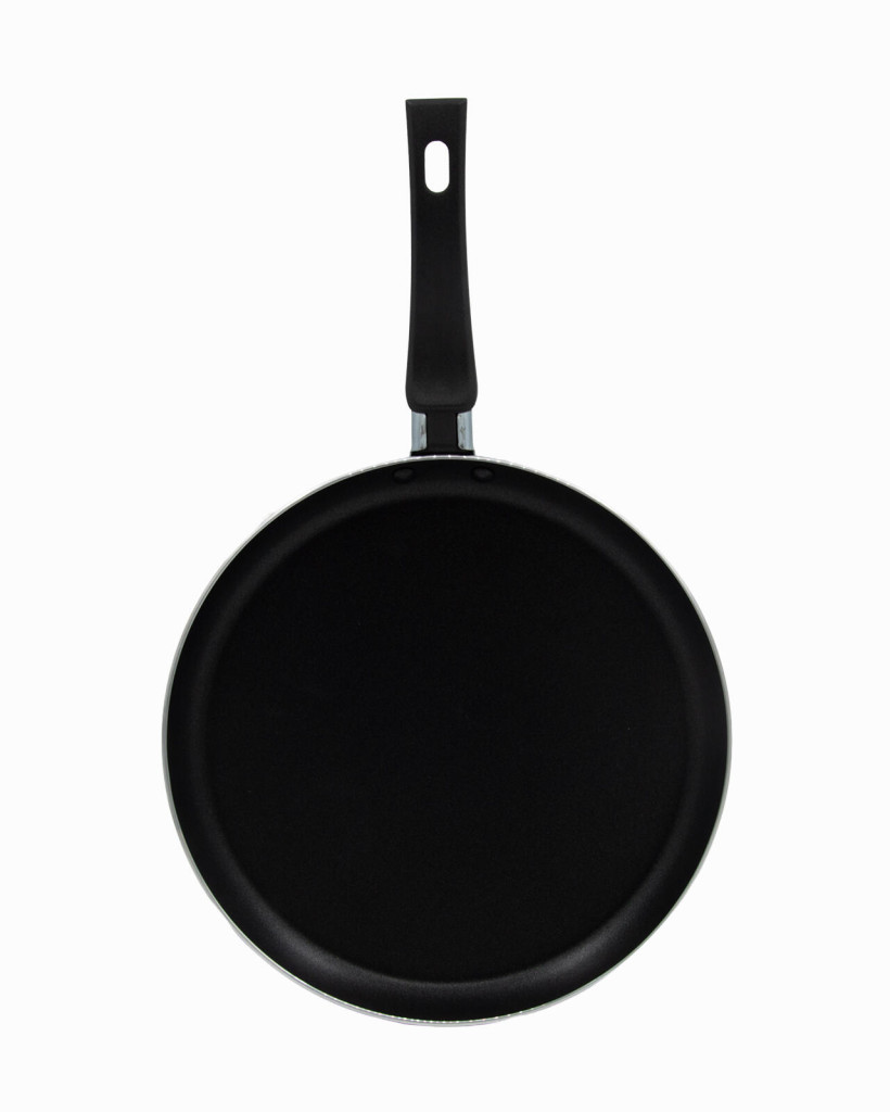 Hliníková pánev na palačinky CULINARIA s nepřilnavým 2vrstvým povrchem XYLAN a černou bakelitovou nýtovanou rukojetí.