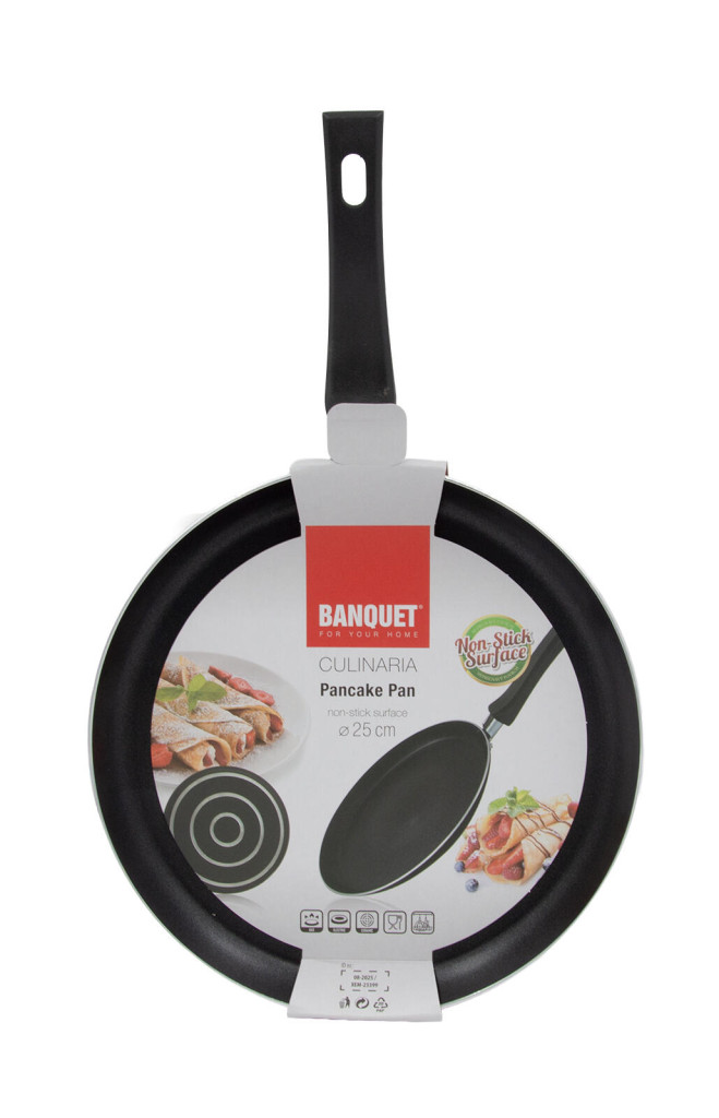 Dotaz na produktPánev na palačinky 25 cm, CULINARIA, nepřilnavý povrch.