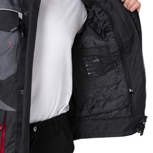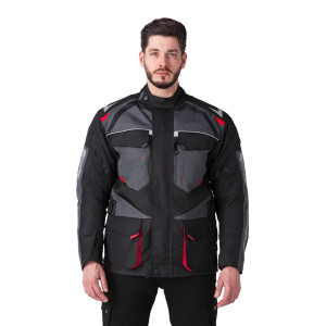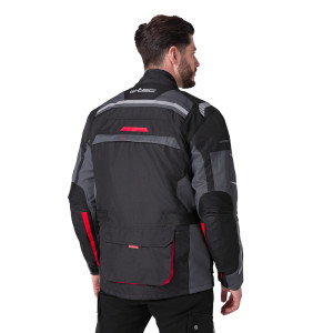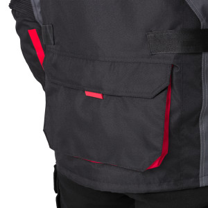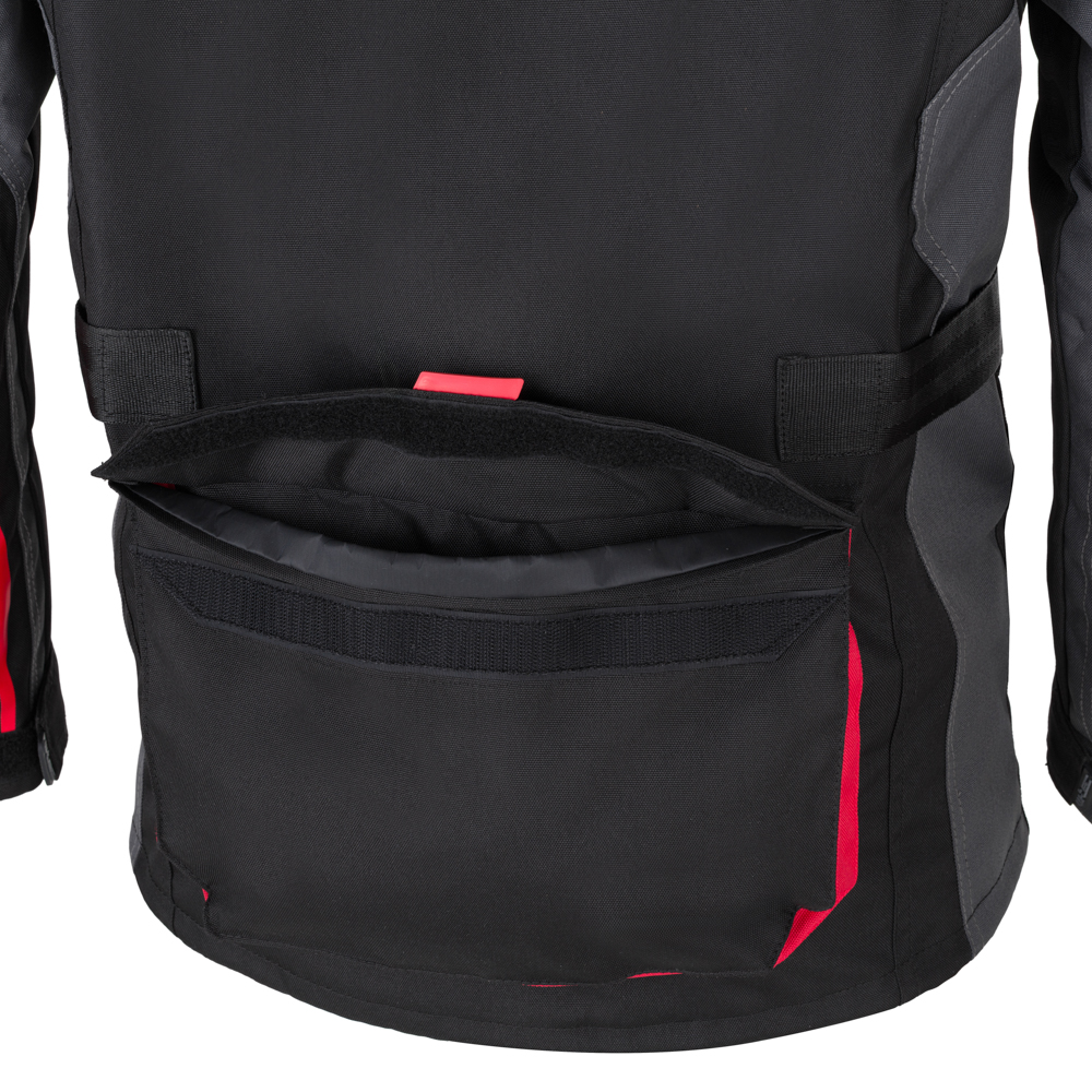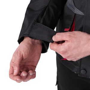 Díky stahovacím popruhům na rukou a v pase lze velikost upravit přesně podle Vaší anatomie těla. Bunda perfektně sedí a navíc umožňuje spojení s moto kalhotami.