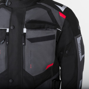Vyjímatelné certifikované protektory jsou umístěny v oblasti ramen a loktů. Chrání jezdce v případě pádu a zmírňuje jeho případná zranění. Bezpečnost je navíc podpořena rozměrnými a strategicky rozmístěnými reflexními prvky, které zvyšují viditelnost jezdce při zhoršených světelných podmínkách.