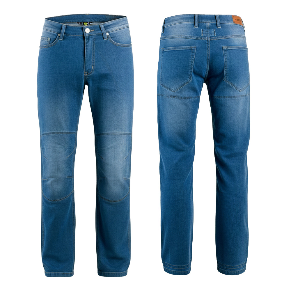 Džíny jsou mimo jiné vybaveny vyjímatelnými chrániči boků a kolen, čímž je ještě zvýšen stupeň bezpečnosti. Kolenní protektory lze dokonce vkládat zvenku. Po vyjmutí chráničů lze jeansy bez jakéhokoliv problému používat i jako normální kalhoty ke každodennímu nošení.