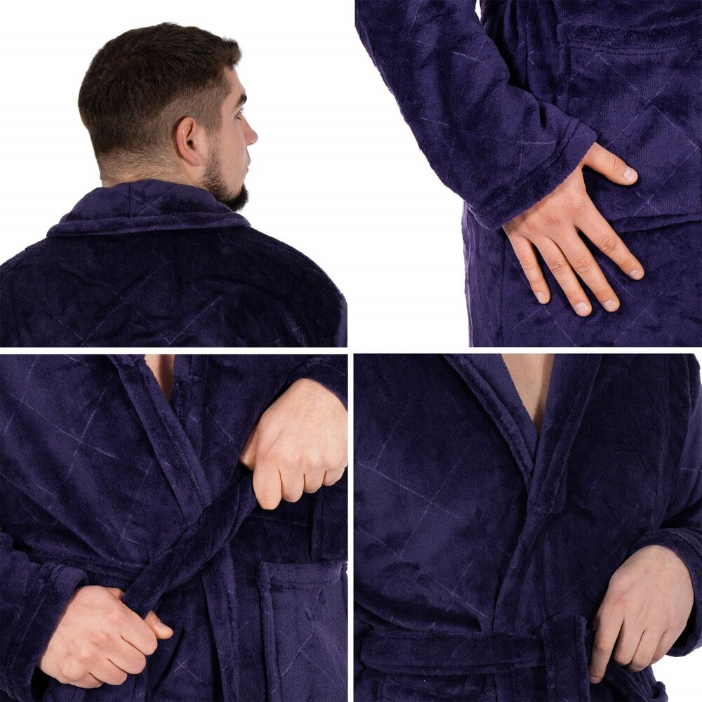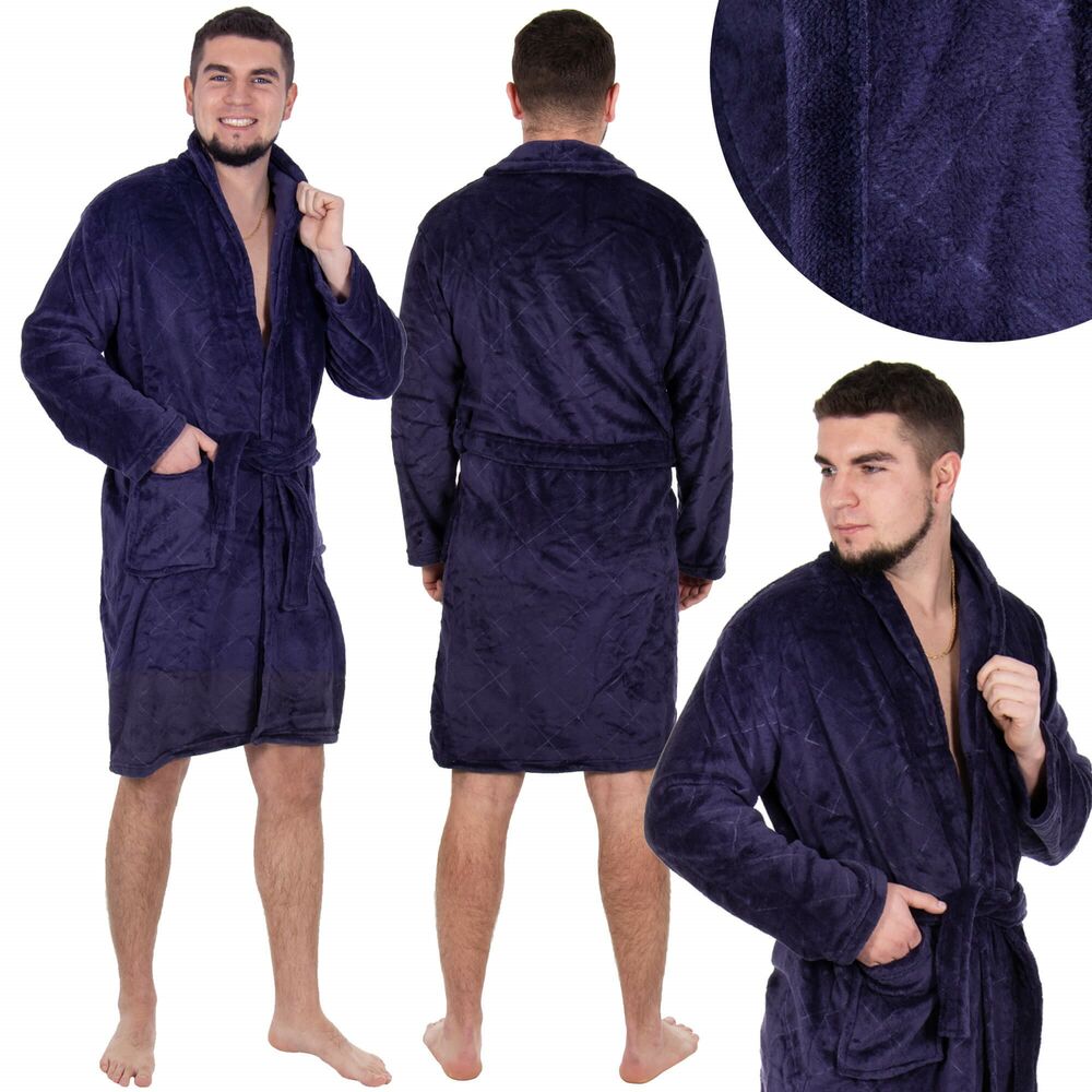 Luxusní pánský župan z příjemného a hřejivého materiálu, s jemným vzorováním, ideální pro chladnější dny. Dlouhý střih zajišťuje maximální pohodlí, doplněn dvěma praktickými kapsami, páskem na stažení a poutkem pro snadné zavěšení. Skvělá volba pro domácí relaxaci. Velikost L/XL.