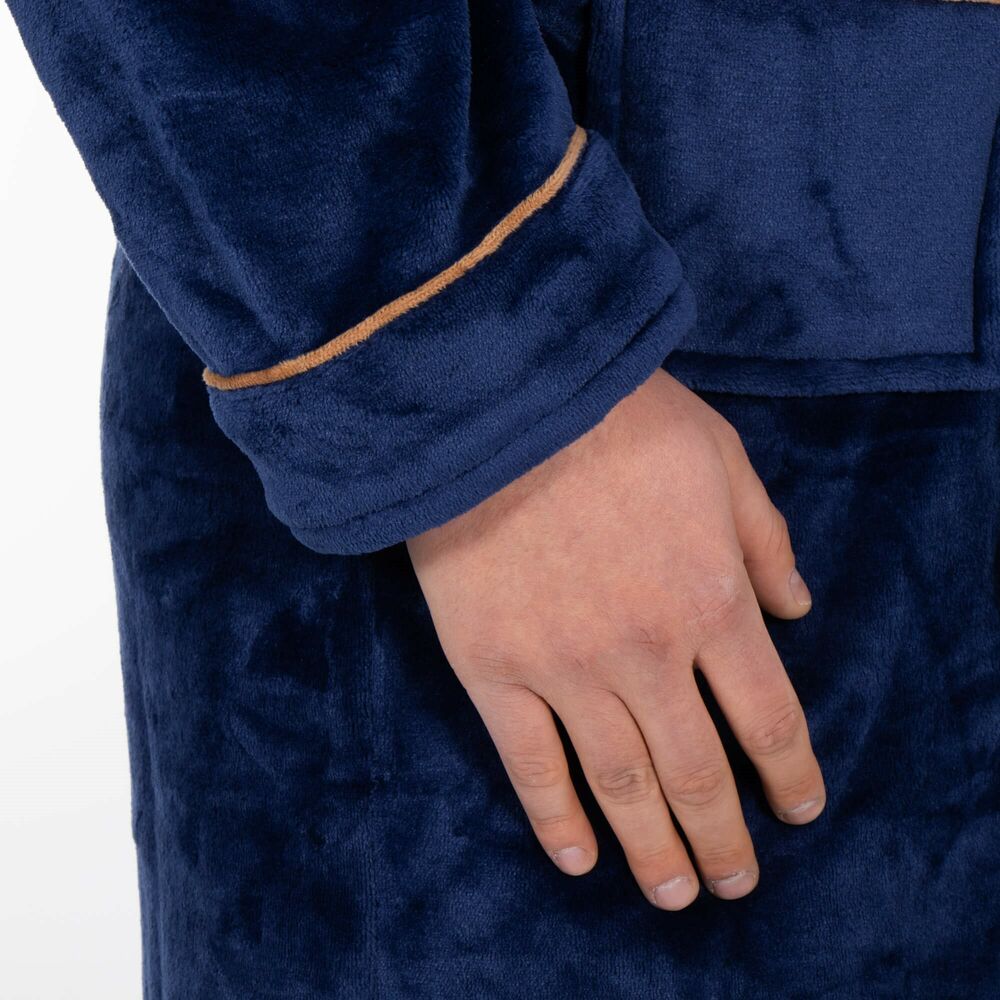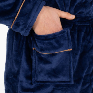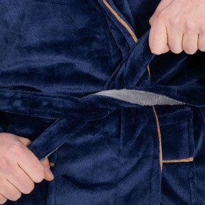 Dlouhý střih poskytuje dostatek tepla a ochrany, zatímco moderní design v elegantní modré barvě a jemným lemováním dodává na atraktivitě. Župan je perfektně navržen tak, aby splňoval nároky na komfort a funkčnost v každodenním používání.