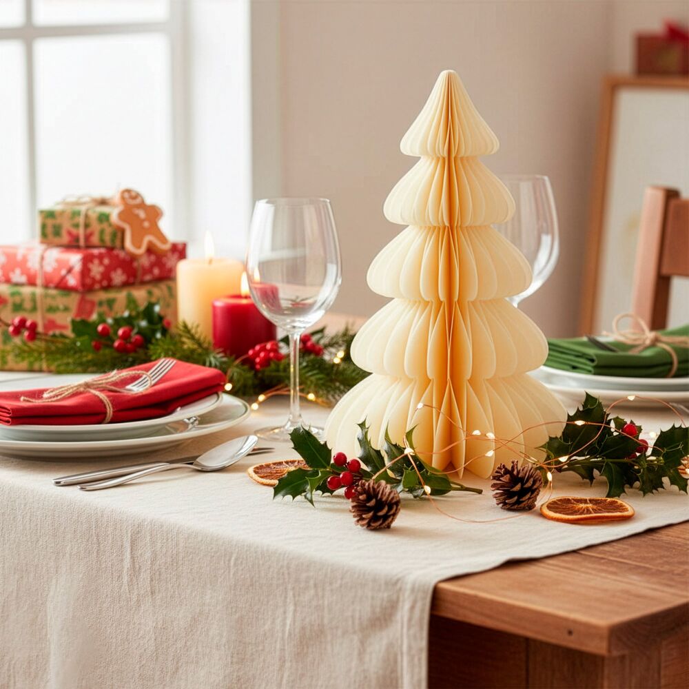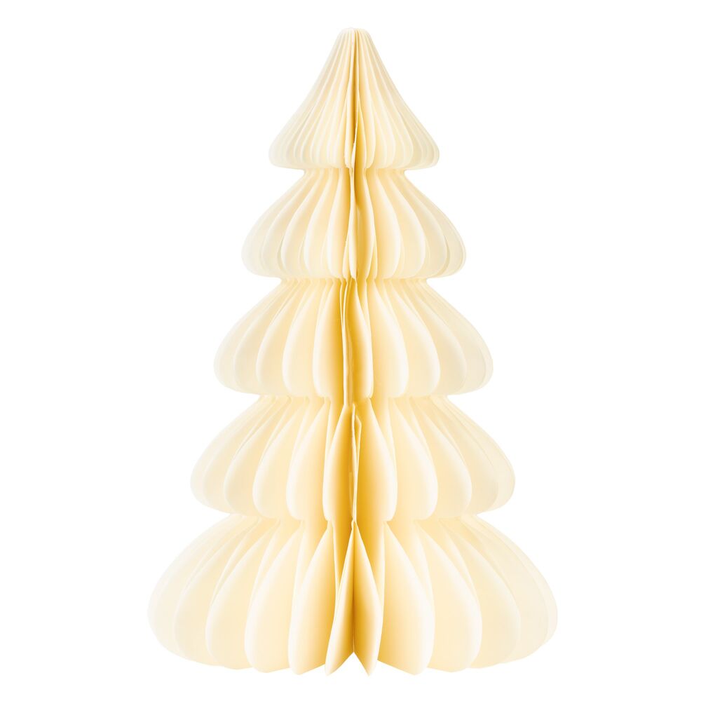 Dekorativní papírový skládací stromeček. Slouží k vytvoření příjemné vánoční atmosféry v interiéru. Ideální jako ozdoba na stůl, polici nebo komodu. Elegantní a minimalistický doplněk pro sváteční výzdobu. Praktické řešení pro opakované použití. Velikost 18 cm, bílá barva.