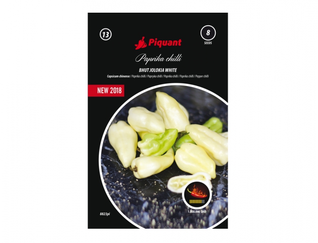 Dotaz na produktVelmi pozdní odrůda velmi silně pálivé papriky typu Jolokia. Plody jsou zelenavě bílé, protáhlé, o šířce 2-3 cm a délce 4-6 cm. Odrůda je vhodná pro pěstování v krytech nebo v nádobách. Pálivost okolo 1 000 000 SHU.