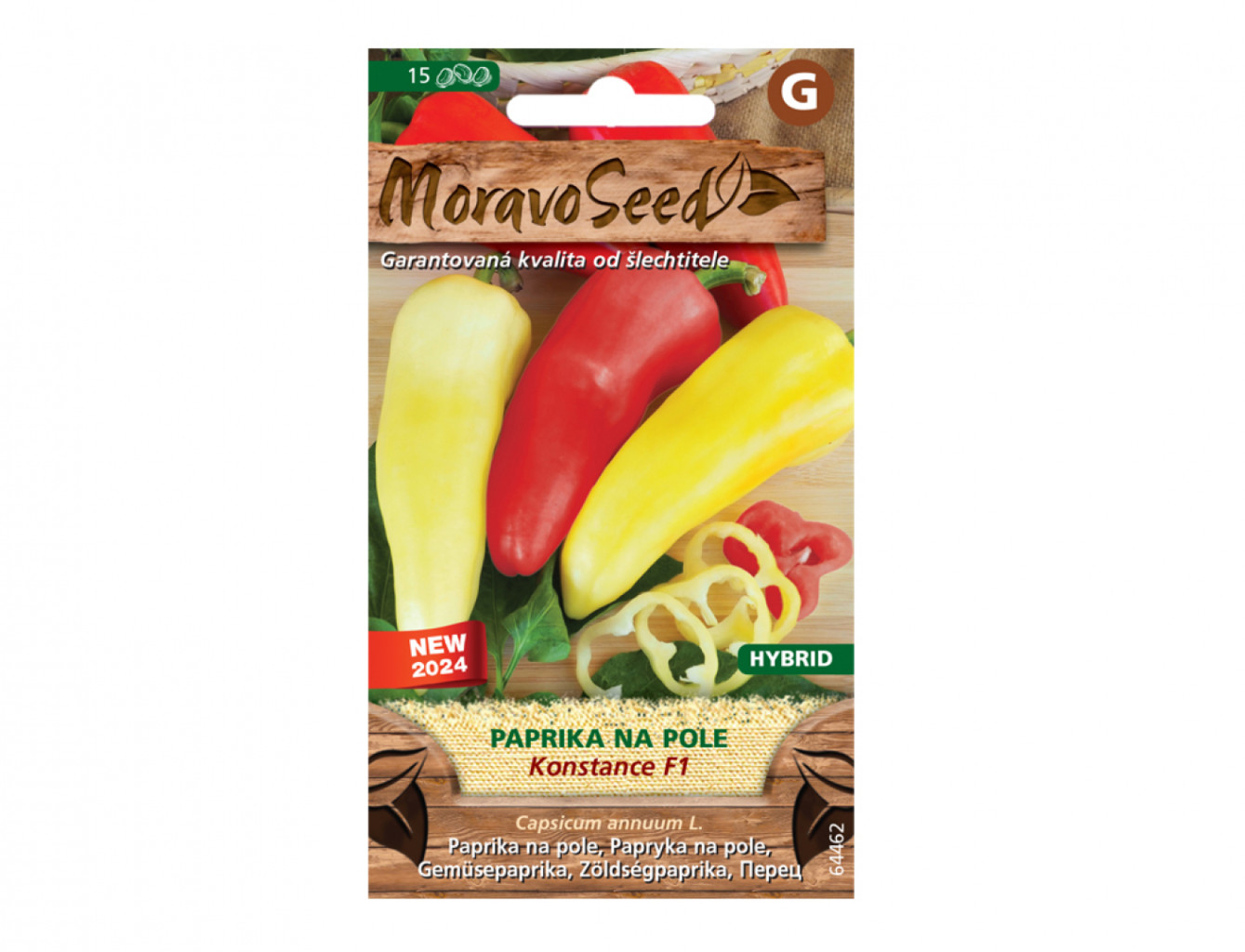 Dotaz na produktRaná hybridní odrůda, určená k pěstování na poli i ve foliových krytech. Plody jsou trojúhelníkovité, převislé, v technologické zralosti světle žluté, v botanické červené. Průměrná hmotnost plodu je 165 g. Odrůda je vhodná pro sklizeň v technologické i botanické zralosti, pro přímý konzum i konzervárenské zpracování.