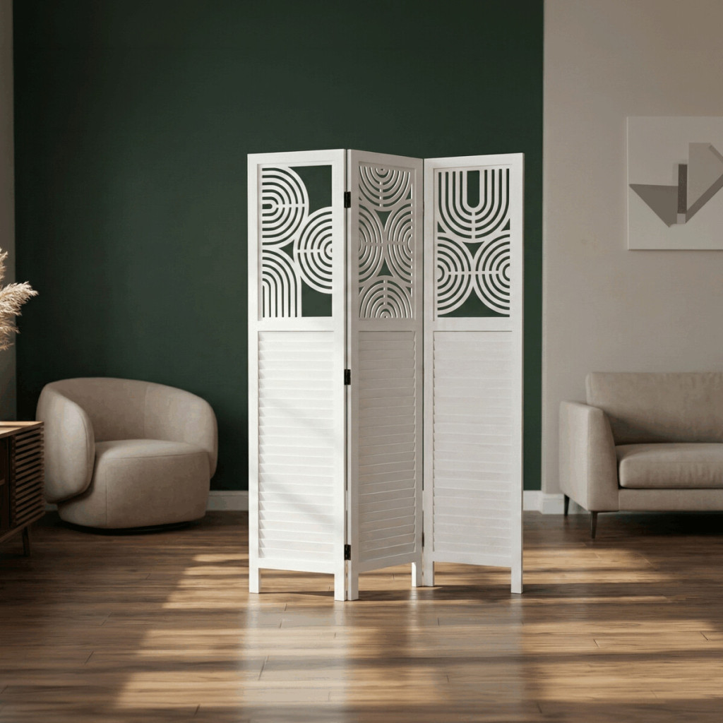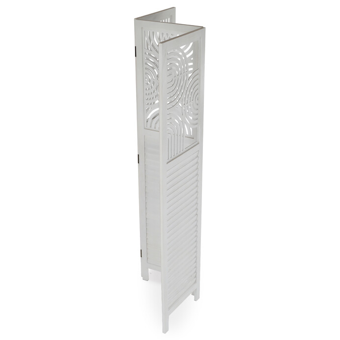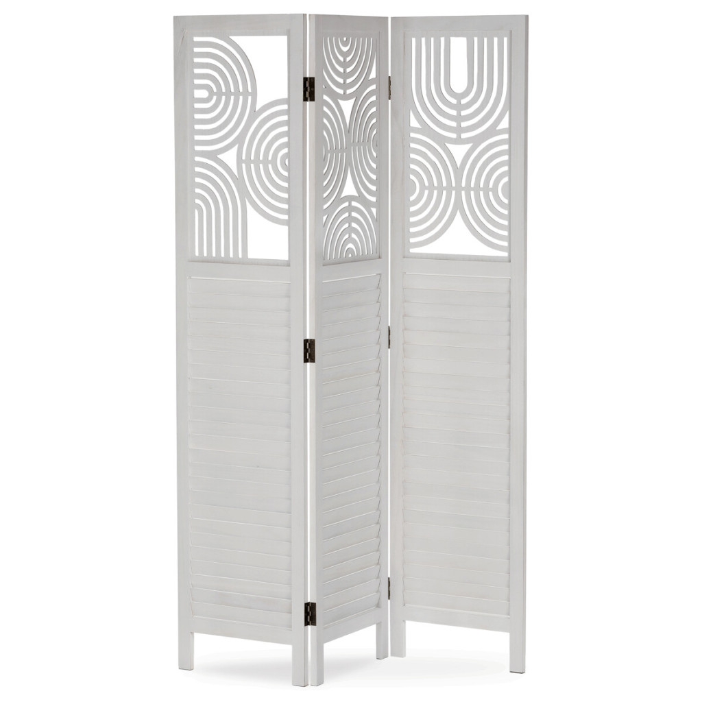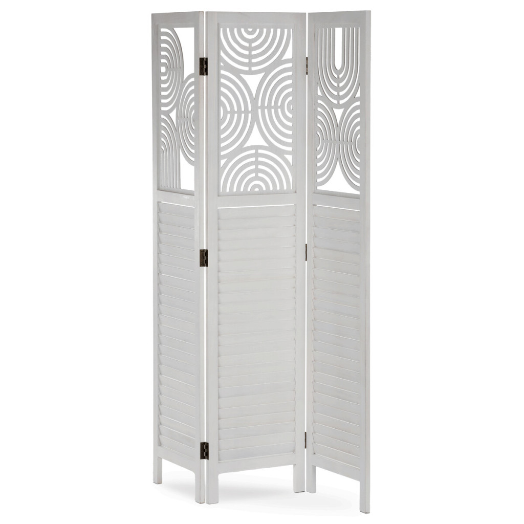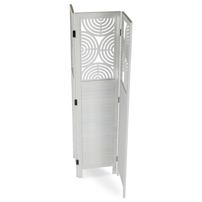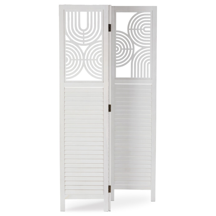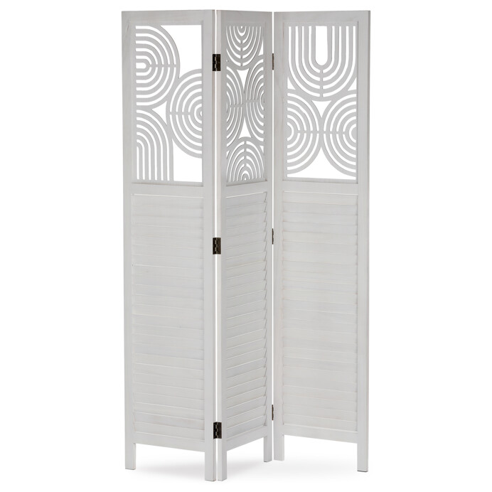Dotaz na produkt Na splátky ještě dnesTřípanelový paraván vyrobený z masivního smrkového dřeva v bílé barvě nabízí praktické řešení pro rozdělení prostoru v interiéru. Každý díl je doplněn dekorativními výřezy v horní části, které propouštějí světlo a zároveň zachovávají soukromí. Masivní materiál zajišťuje pevnost a stabilitu, zatímco přírodní textura dřeva dodává výrobku přirozený vzhled. Paraván je vhodný pro použití v obývacích pokojích, ložnicích nebo kancelářích, kde pomáhá vytvořit útulné a funkční prostředí. Díky skládací konstrukci je snadno přemístitelný a skladovatelný.