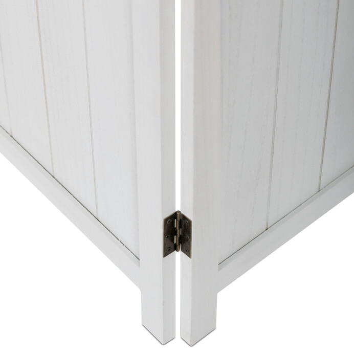 Dotaz na produkt Na splátky ještě dnesTřídílný paraván z masivního smrkového dřeva v bílé barvě nabízí praktické řešení pro rozdělení prostoru či vytvoření soukromí v interiéru. Každý díl je tvořen pevnou rámovou konstrukcí s dolní částí z masivních PVC lamel a horní částí s proplétaným vzorem, který dodává lehkost a zajímavý vizuální efekt. Díky pevním kovovým pantům lze jednotlivé díly snadno skládat a nastavit do požadovaného úhlu, což zajišťuje stabilitu a variabilitu použití. Povrchová úprava bílým nátěrem podtrhuje přírodní charakter dřeva a umožňuje snadnou údržbu. Paraván je vhodný pro použití v domácnostech i komerčních prostorách, kde oceníte kombinaci funkčnosti a decentního designu. Rozměr jednoho dílu je 40x171 cm.