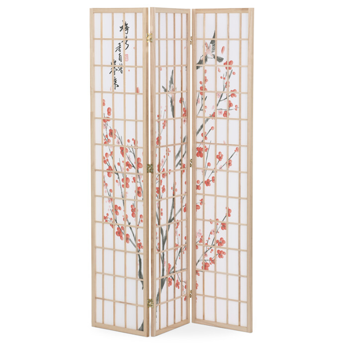 Dotaz na produkt Na splátky ještě dnesTřípanelový paraván z masivního smrkového dřeva v přírodním odstínu nabízí lehkou a vzdušnou přepážku s bílou netkanou textilií, která je zdobená jemným motivem větví s květy a ptáky v černých a červených tónech. Pevné dřevěné rámy zajišťují stabilitu a zároveň umožňují snadné skládání a přemístění. Paraván je vhodný pro optické oddělení prostoru v interiéru, přičemž jeho přírodní barevnost a decentní dekor vytvářejí klidnou atmosféru. Díky lehkému materiálu se snadno udržuje a je ideální pro použití v obývacích pokojích, ložnicích nebo kancelářích.