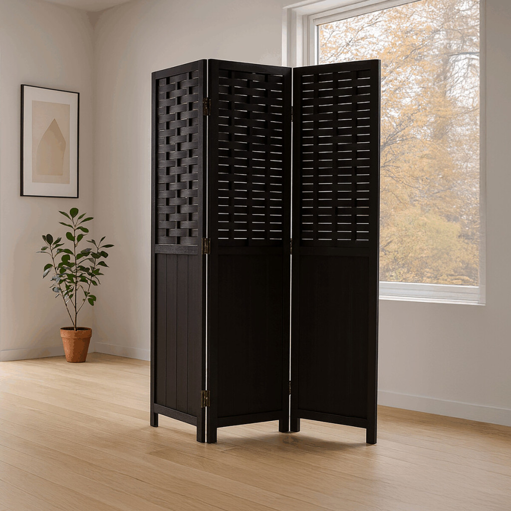 Dotaz na produkt Na splátky ještě dnesTřídílný paraván z masivního smrkového dřeva v černém provedení nabízí praktické řešení pro rozdělení prostoru s výrazným přírodním dekorem. Horní část tvoří propletené lamely, které propouštějí světlo a zároveň zajišťují dostatečnou míru soukromí, spodní část je tvořena plnou deskou s viditelnou strukturou dřeva. Pevné panty umožňují snadné skládání a přizpůsobení úhlu rozložení podle potřeby. Povrchová úprava v černé barvě podtrhuje výraznou texturu dřeva a usnadňuje údržbu. Paraván je vhodný pro použití v interiérech, kde je potřeba opticky oddělit části místnosti nebo vytvořit dekorativní prvek.