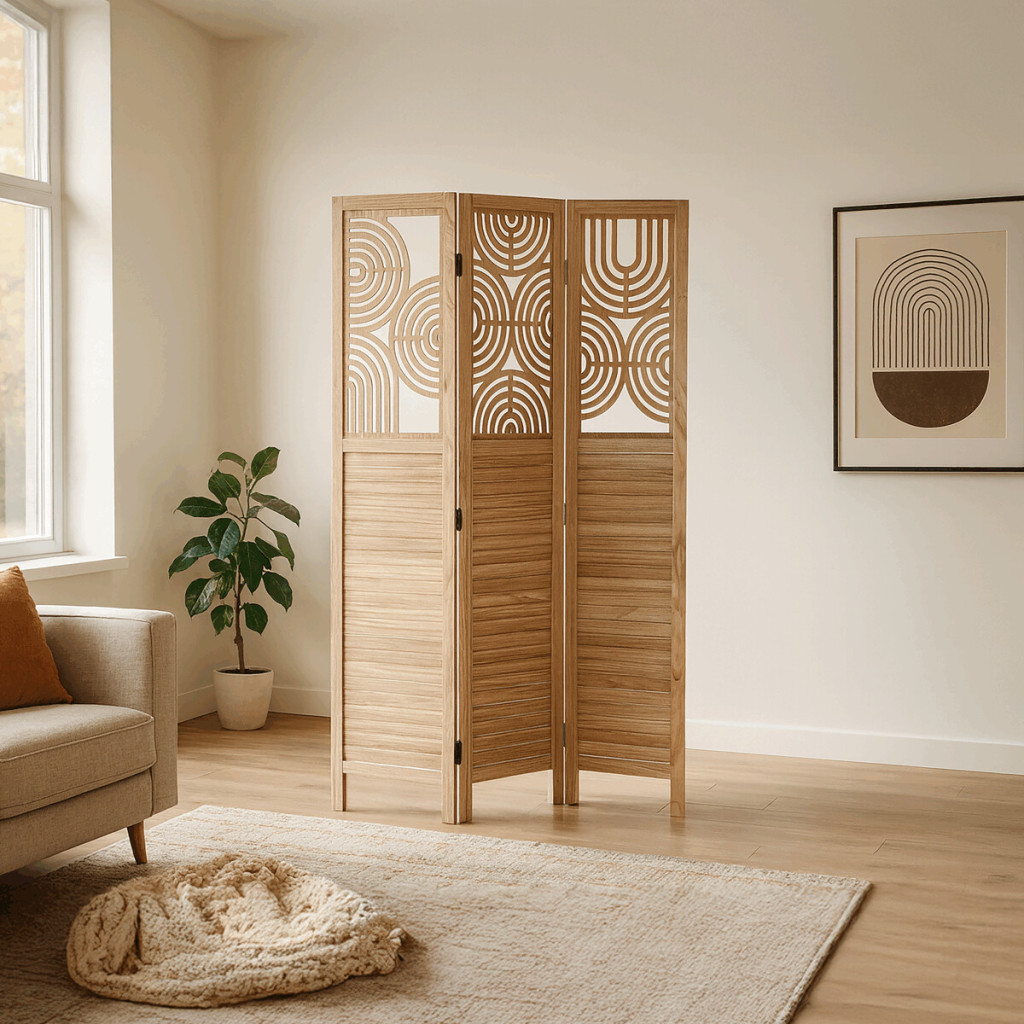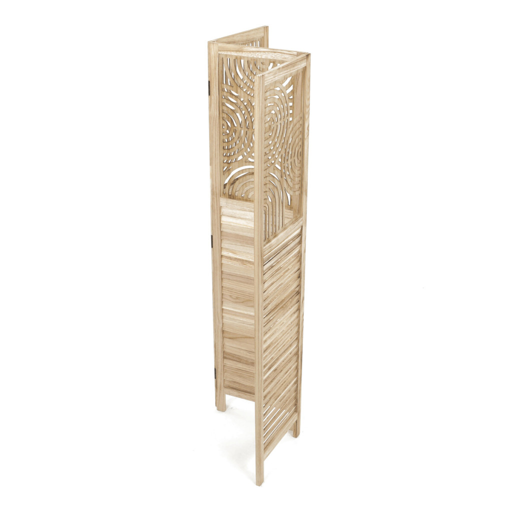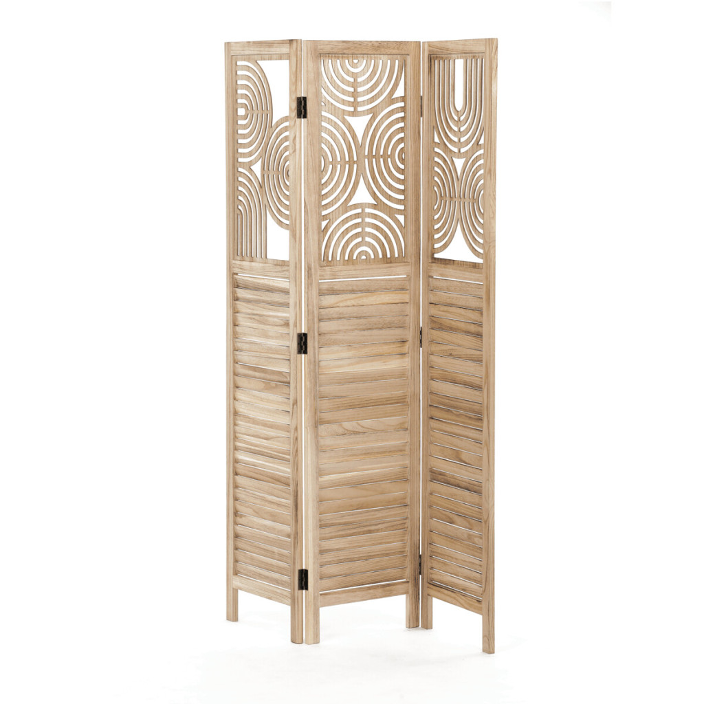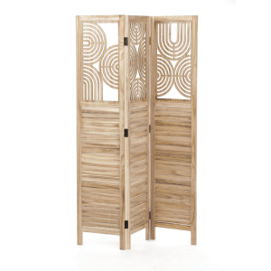 Dotaz na produkt Na splátky ještě dnesTřídílný dřevěný paraván z masivu smrku v přírodním odstínu kombinuje pevné provedení s dekorativní perforací horní části, která vytváří zajímavý vizuální efekt. Každá část je spojena kovovými panty umožňujícími flexibilní nastavení úhlu a snadné přenášení či skladování. Paraván slouží jako praktický prvek pro rozdělení prostoru nebo zvýšení soukromí v interiéru, přičemž přírodní dřevěný dekor přináší do místnosti teplý a přirozený vzhled. Povrch je upraven tak, aby materiál byl snadno udržovatelný a odolný vůči běžnému opotřebení. Rozměry a konstrukce zajišťují stabilitu a dlouhou životnost produktu.