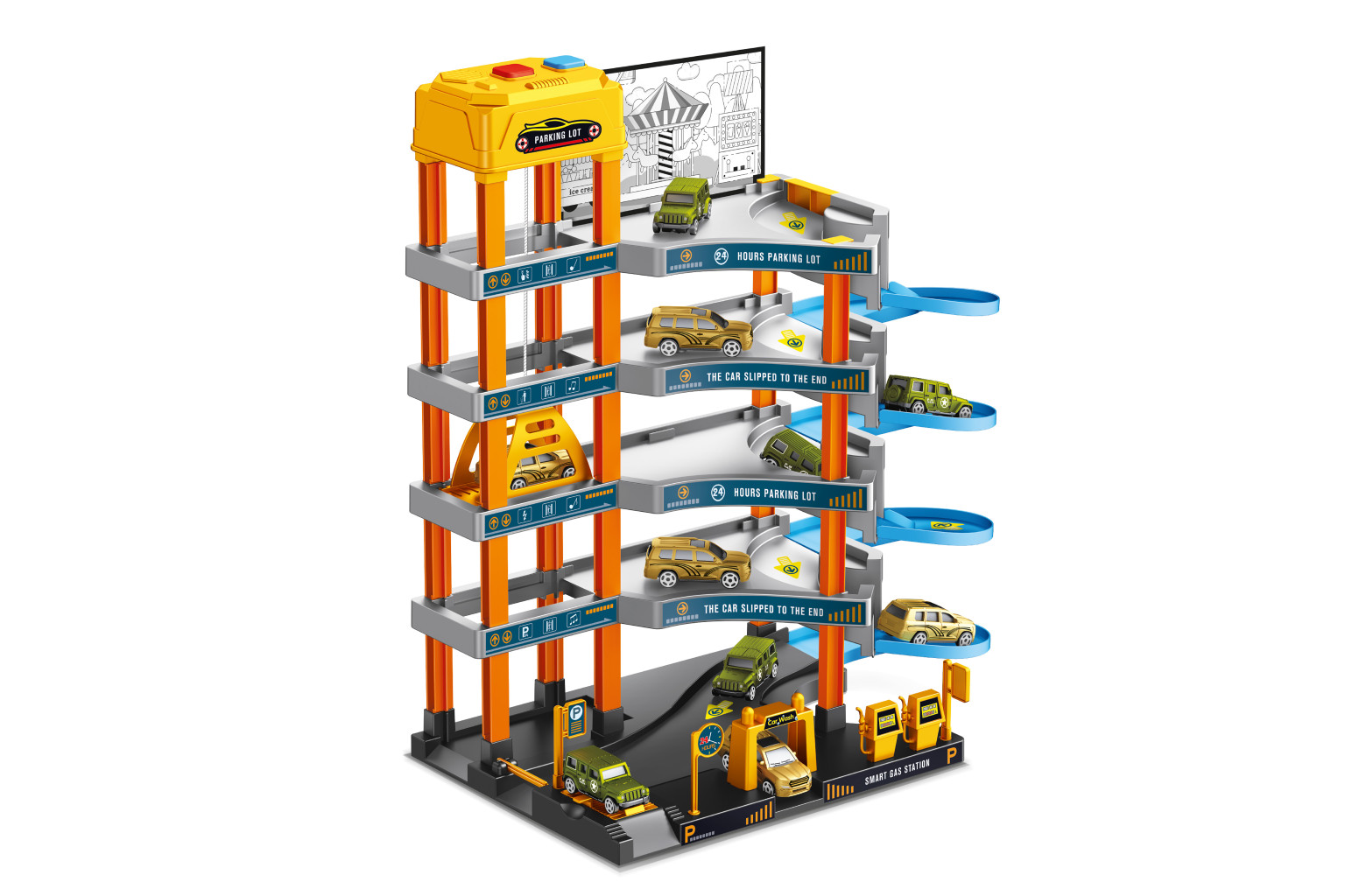 Dotaz na produktPostav si vlastní parkovací stanici s garáží. Rozměry 36,5 x 21,5 x 46,5 cm. Součástí 4 auta (volná kola), myčka, čerpací stanice, servis a elektrický výtah. 3xAAA baterie nejsou součástí. Doporučený věk: 3+