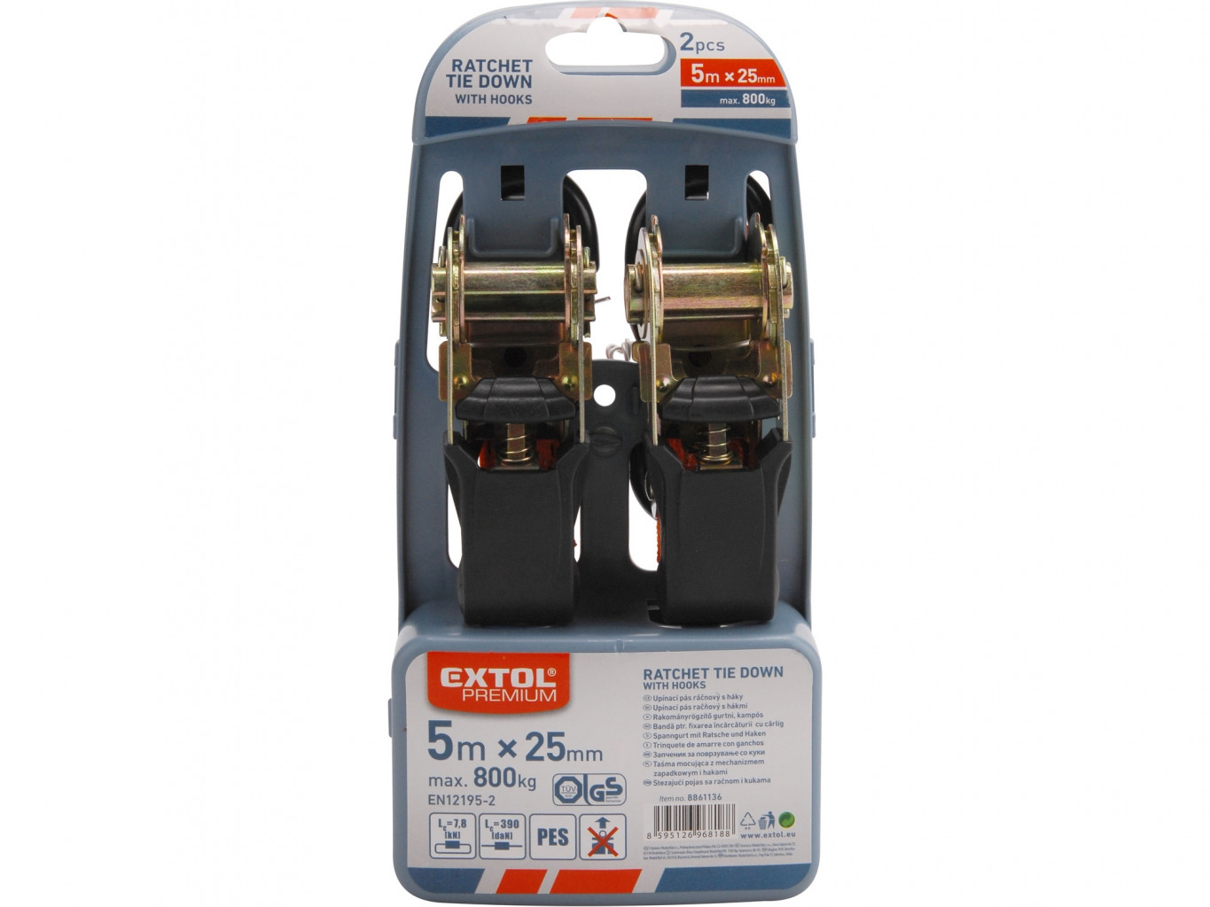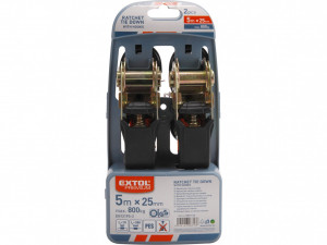Pás upínací ráčnový s háky, 5m x 25mm, sada 2ks, max. 800kg