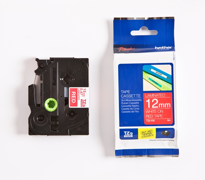 Standardní TZ/TZE-335 páska, 12 mm x 8 m, barva červená/bílá, laminovaná, je určená do všech typů tiskáren štítků Brother. Využívá se pro výrobu šablon elektroc hemického značení. TZE pásky nahrazují modely pásek TZ. Jedná se o ekologickou verzi pásek TZ.