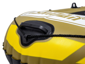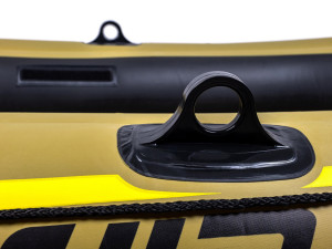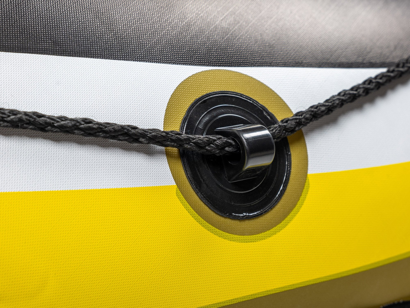 Materiál s tloušťkou 0,45 mm zároveň výborně odolává oděru a nárazům. Díky dvěma samostatně nafukovacím bočním komorám je člun stabilní a pevný.