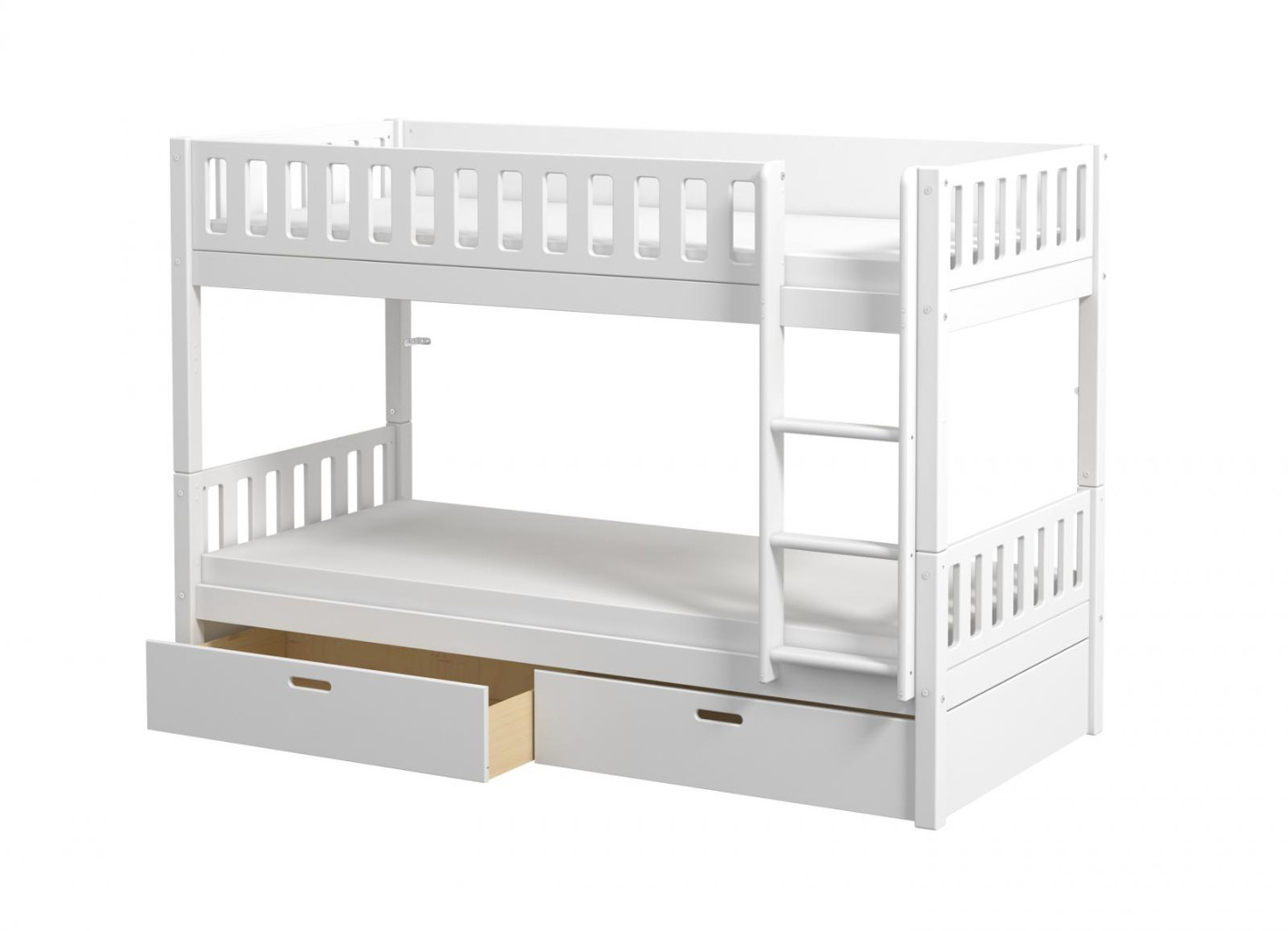 Patrová postel Viggo je skvělým řešením, pokud sourozenci sdílejí pokoj – nebo potřebujete přistýlku pro časté návštěvy přátel a rodiny. Zásuvky pod postelí nabízí spoustu stylového úložného prostoru. DLE POTŘEBY LZE ROZDĚLIT NA 2 SAMOSTATNÉ POSTELE.