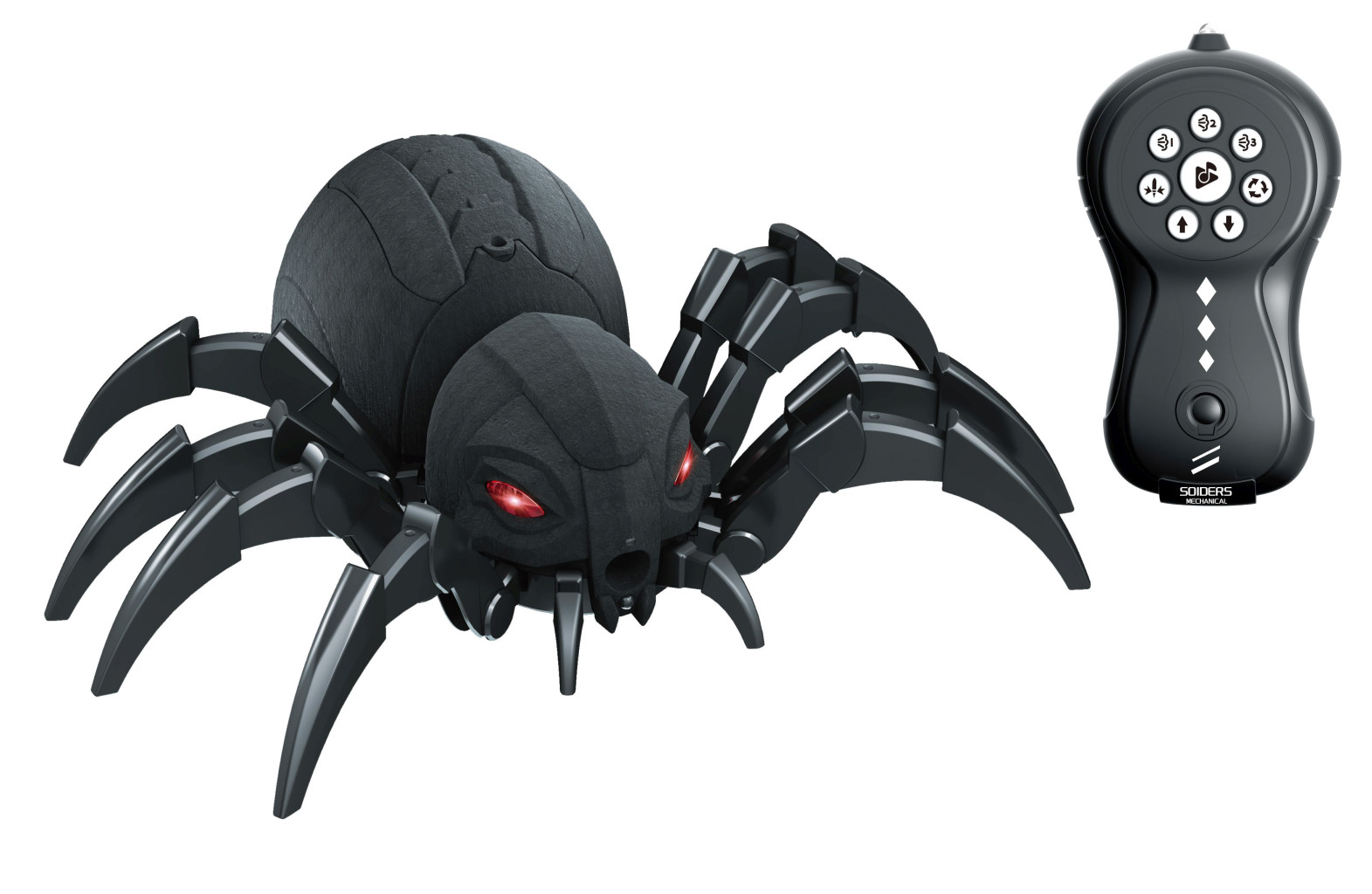 Dotaz na produktPavouk kouřící RC na dálkové ovládání. Rozměry 30x28x10 cm. Frekvence 2.4GHz. Světelné, zvukové a kouřové efekty. Tlačítka na ovladači - chůze dopředu, dozadu zatáčí, 3 módy kouřových efektů, 2 demo režimy, zvuk. 3.7V bateriový pack do pavouka součástí, 2xAA do ovladače nejsou součástí. Nádržka na vodu na spodní straně pavouka. USB kabel, nádobka na vodu součástí.