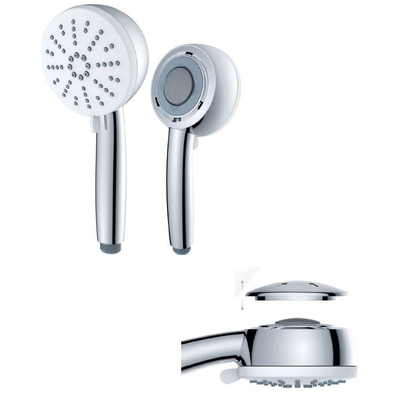 Sprchová hlavice má oboustranné využití. Na jedné straně je klasická sprcha s přepínačem a třemi funkcemi - rain, massage a kombinace obou.